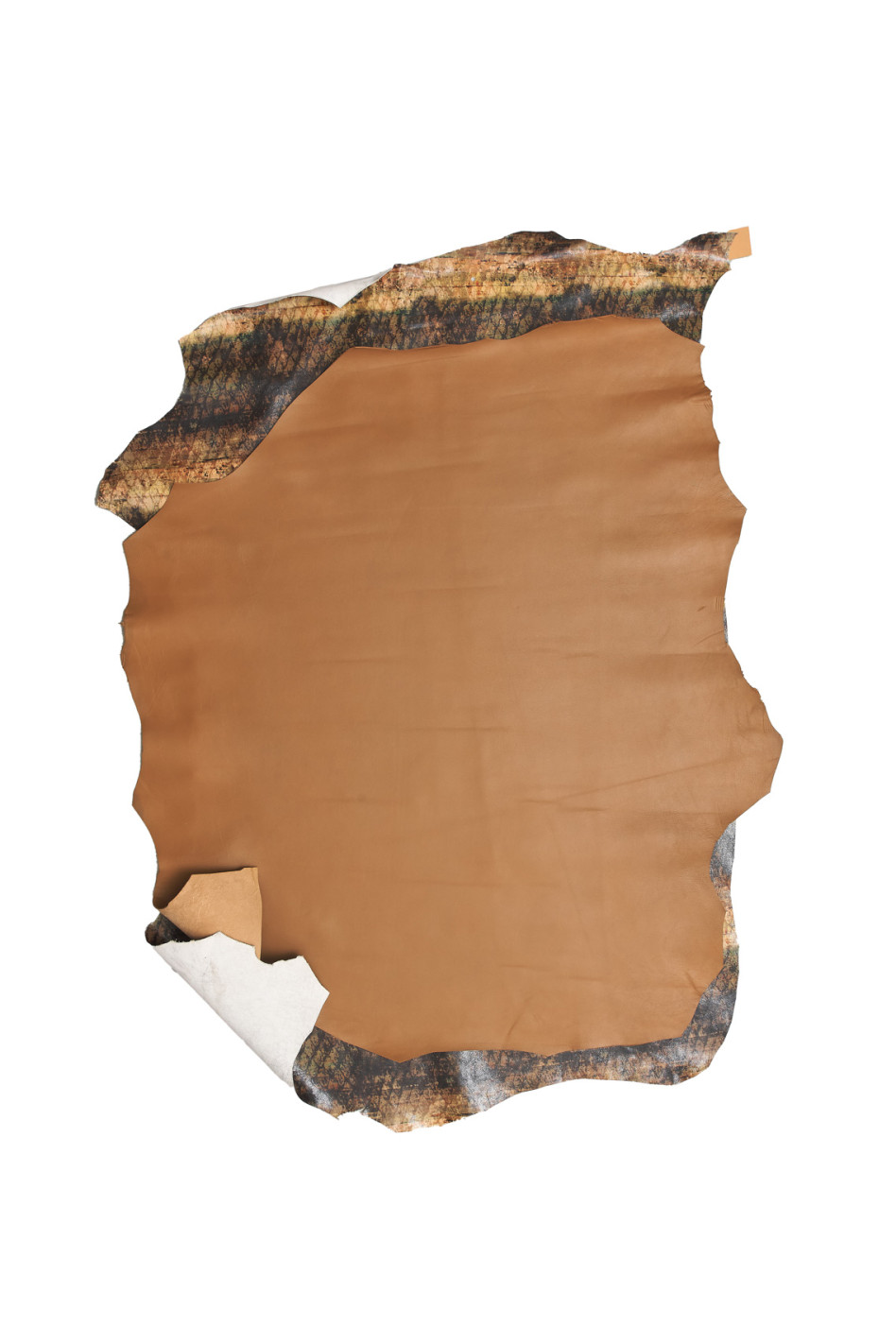 Original set of 2 leathers, 1 shiny brown and green reptile print goatskin and 1 smooth soft leather.