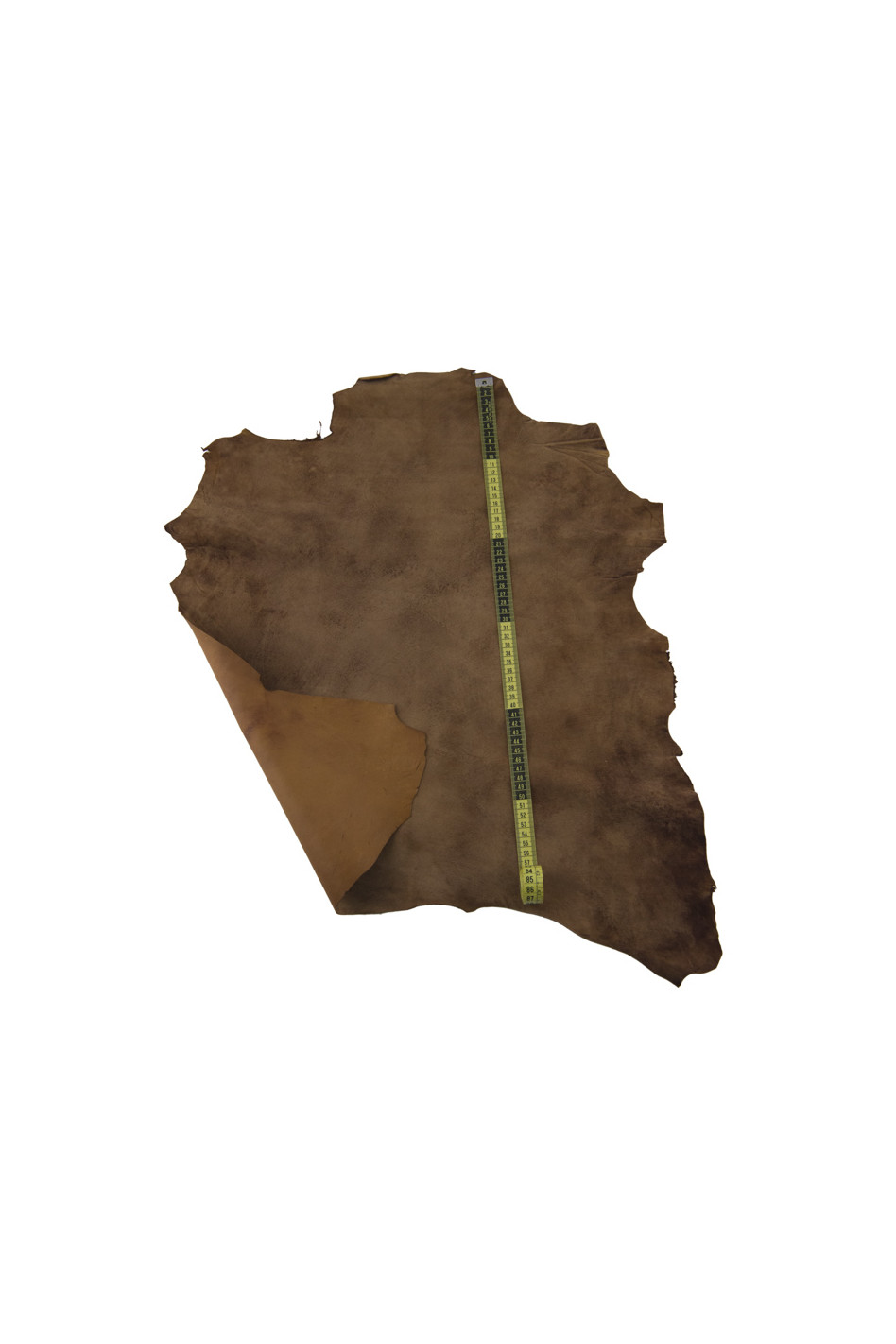 Amazing suede leather on brown goat, aged effect, soft and vintage for hobbyists.