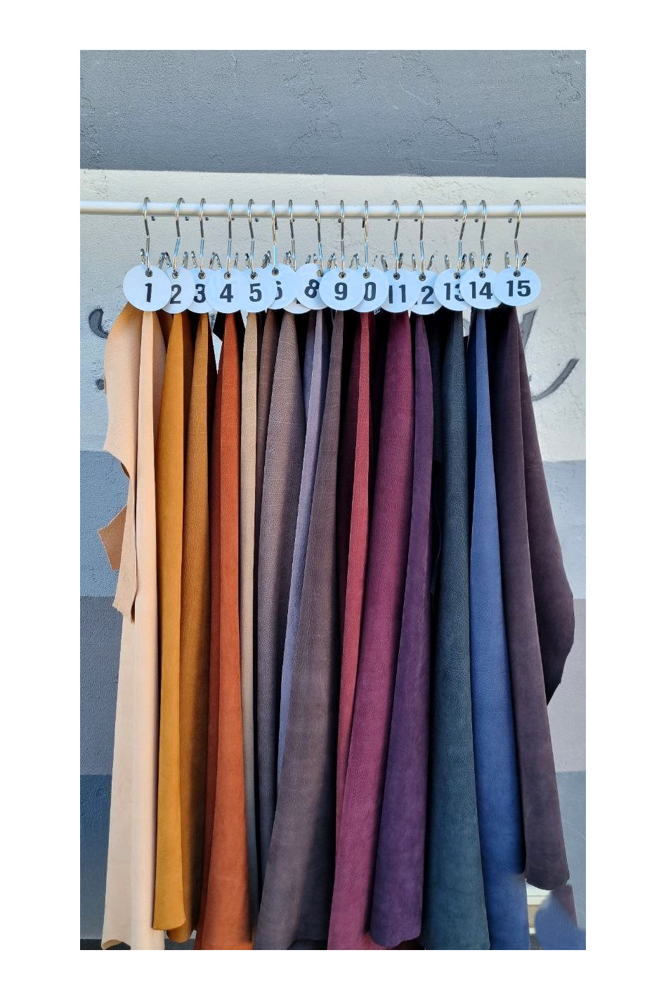 Hig quality nubuck leather hides, solid colors in different tones.