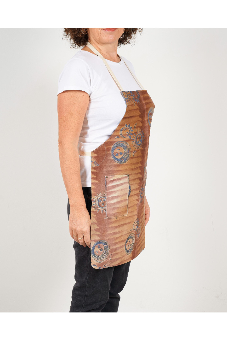 Questo grembiule in pelle dipinta a mano è un pezzo unico, creato per chi cerca un accessorio funzionale ed elegante.