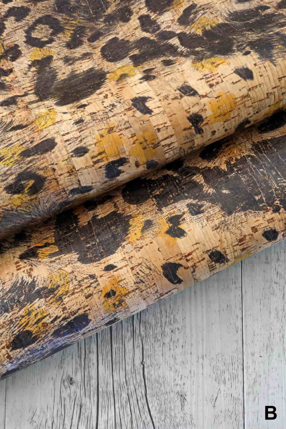 Fogli di sughero naturale, made in Italy, noto come pelle vegana, stampa animalier, disponibile in 2 colori.