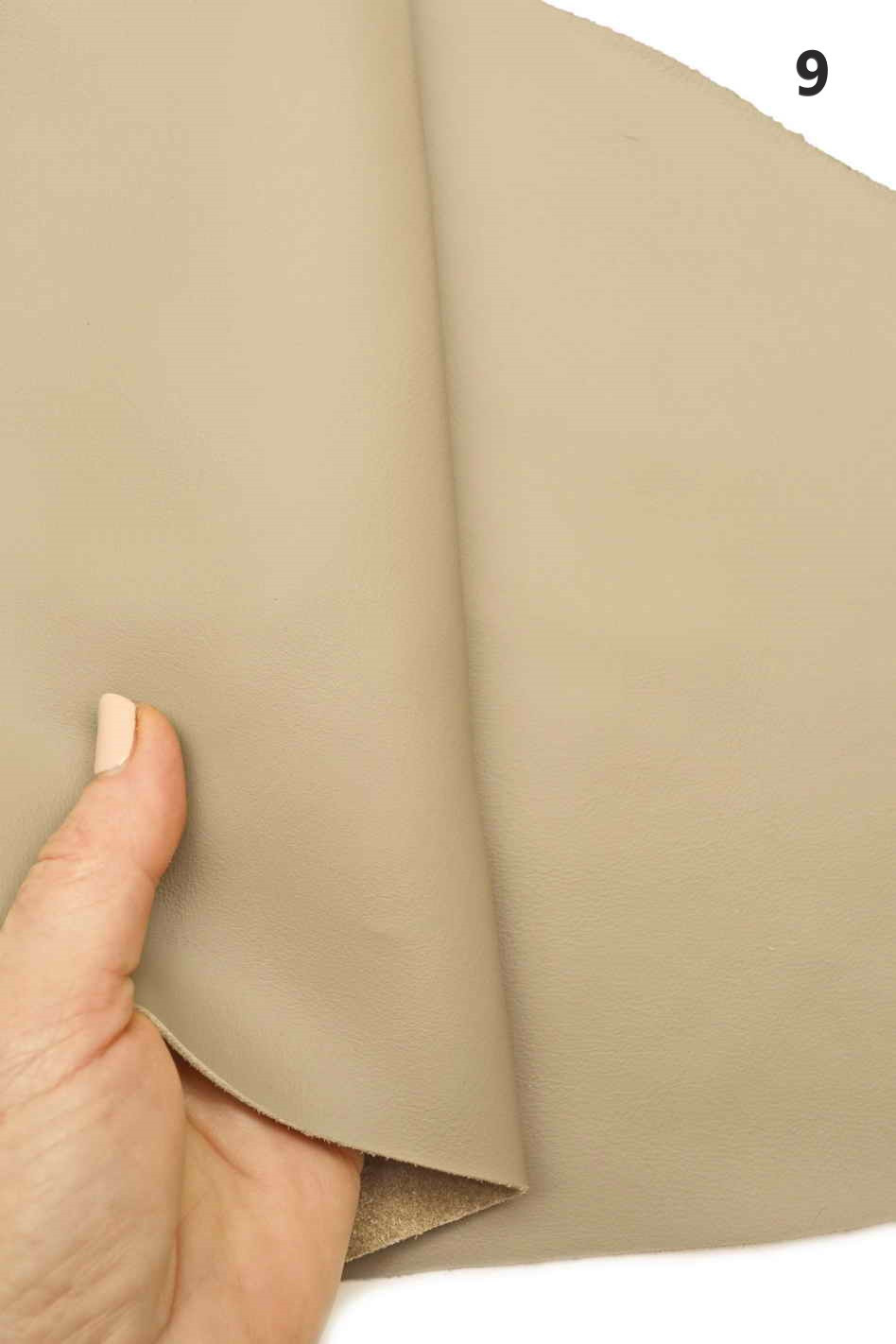 - PELLE N.13 : 180 x 85 cm, 1.3 / 1.4 mm (spessore), color Taupe, aspetto opaco liscio,