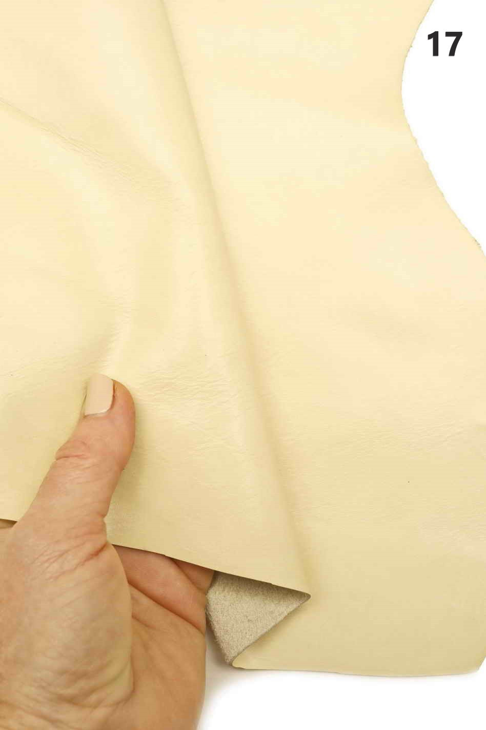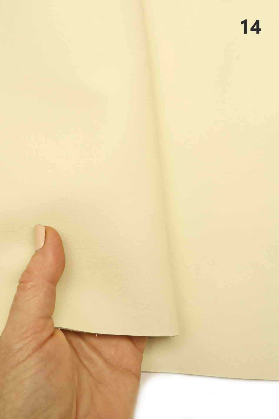 - PELLE N.14 : 140 x 95 cm, 1.2 / 1.4 mm (spessore), color Latte, aspetto opaco liscio,