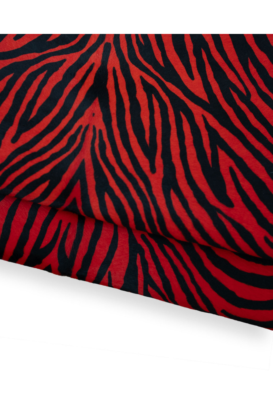 Pelle CAVALLINO ZEBRATA, pelle con pelo stampa animalier rosso nero, elegante vitello pony per artigianato