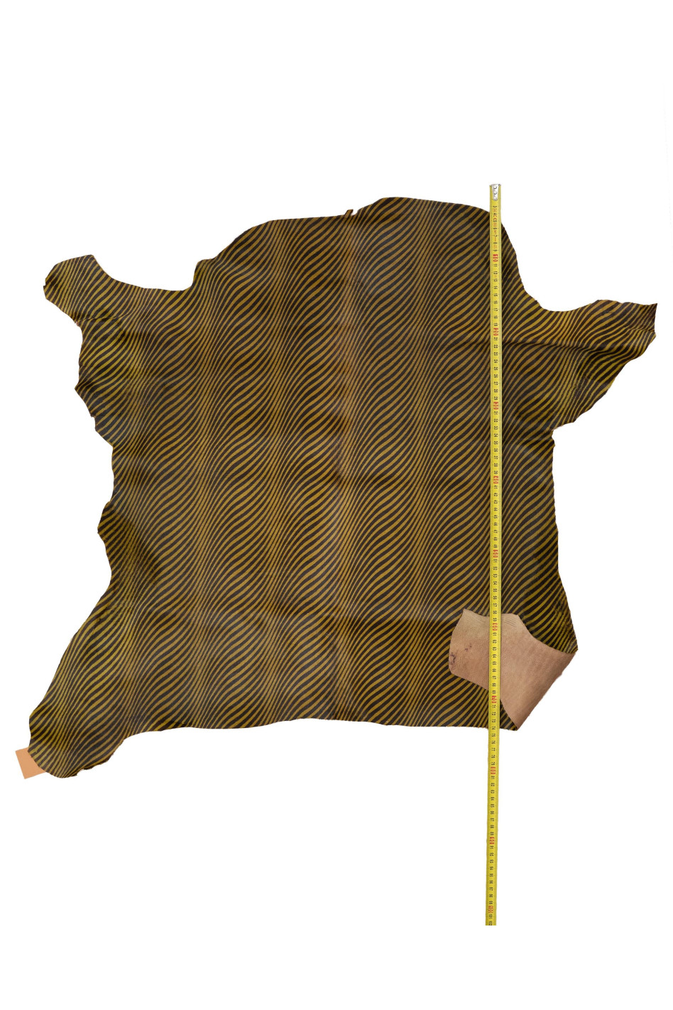 Particolare Pelle di cavallino stampa zebra, pellame pony animalier giallo - marrone, vitello di lusso per artigiani.
