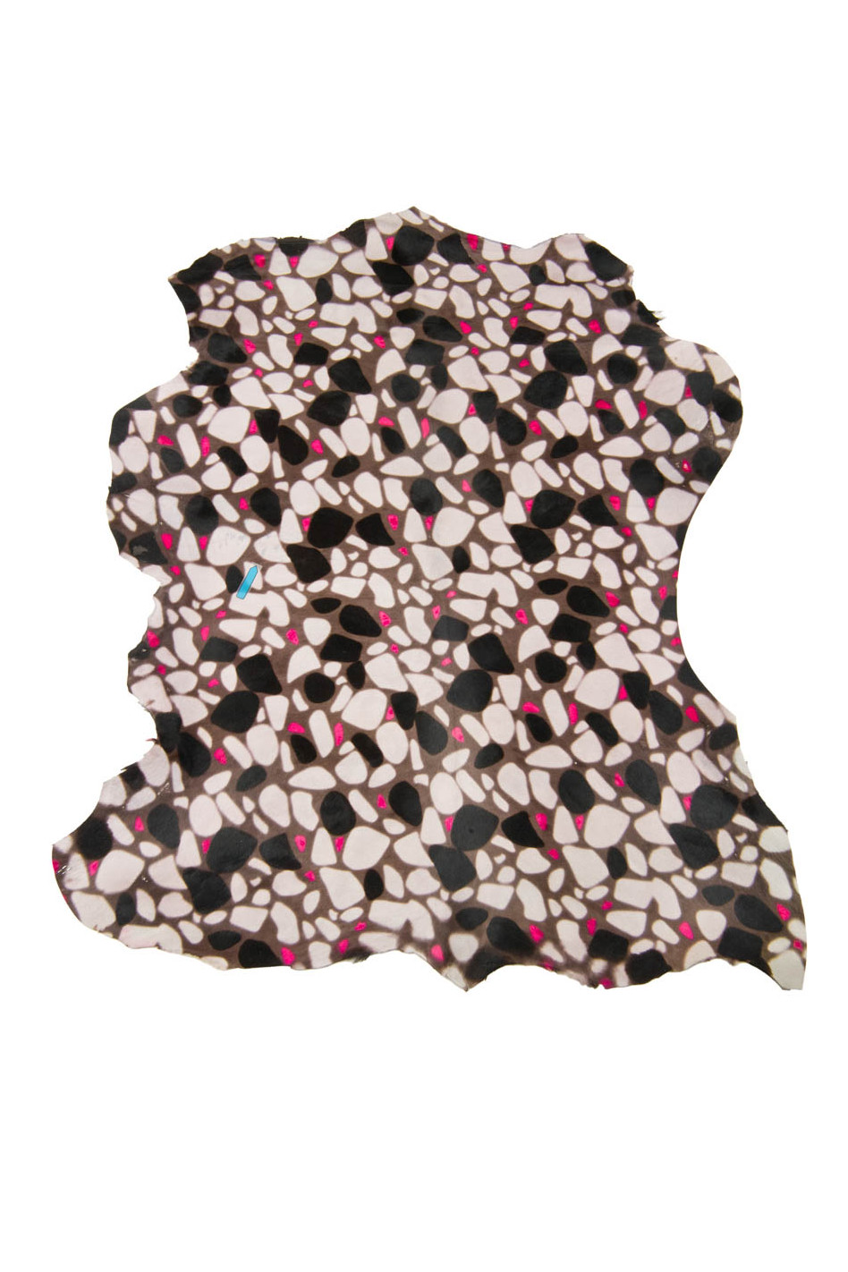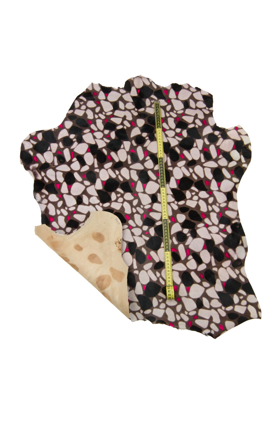 Pelle CAVALLINO in vitello, stampa GEOMETRICA dai toni beige, nero e fucsia, pellame pony stampato per artigiani
