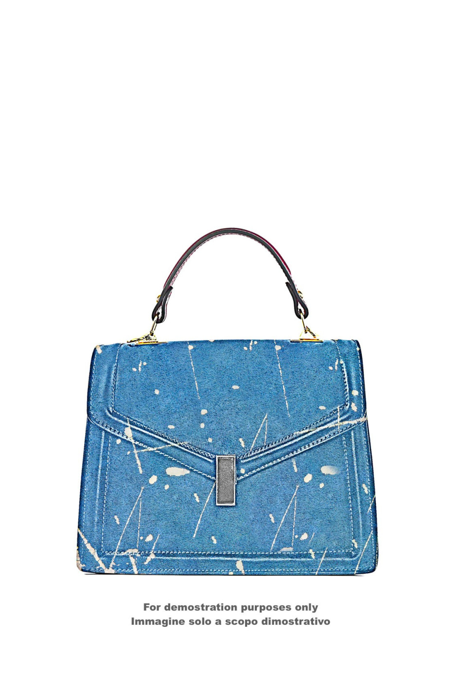 Pelle stampa SCHIZZO azzurro e bianco, vitello SCAMOSCIATO decorato a mano, pellame artistico morbido