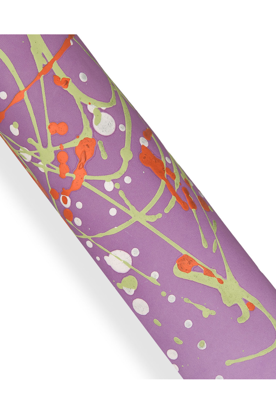 Introvabile pelle viola lavanda fantasia schizzo verde - arancio - bianco, nappa decorata a mano, pellame originale per hobbisti.