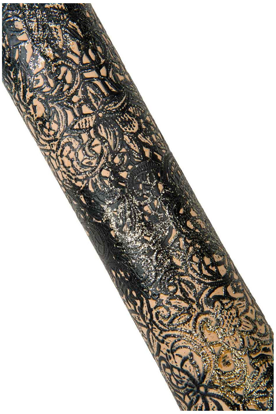 Pelle a fiori con GLITTER beige-nero, vitello dipinto a mano, pellame stampato tempra standard per artigiani