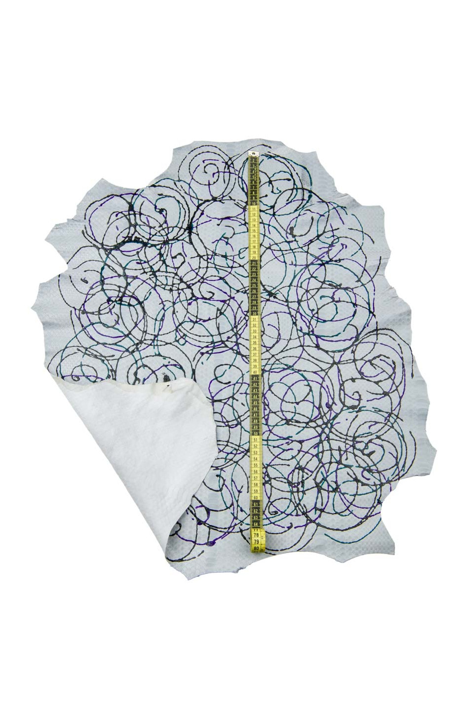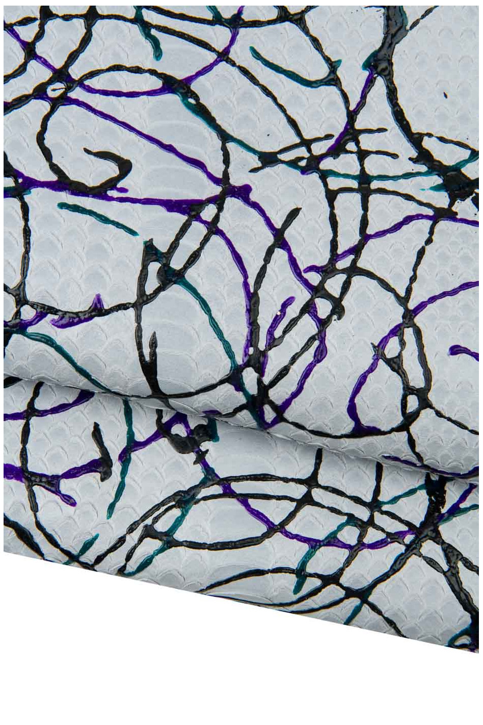Pelle italiana, mezzo vitello stampa squametta e disegno schizzo motivo pollock, pelle per hobbisti.