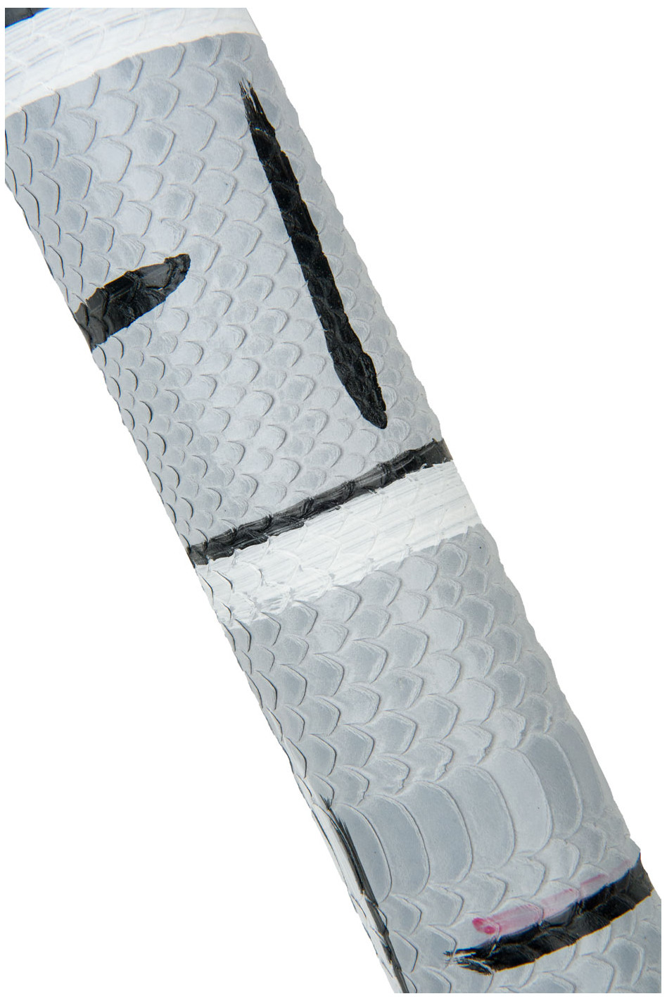 Bellissima pelle rettile dipinta a mano con disegno geometrico bianco e nero, ideale per il fai da te.