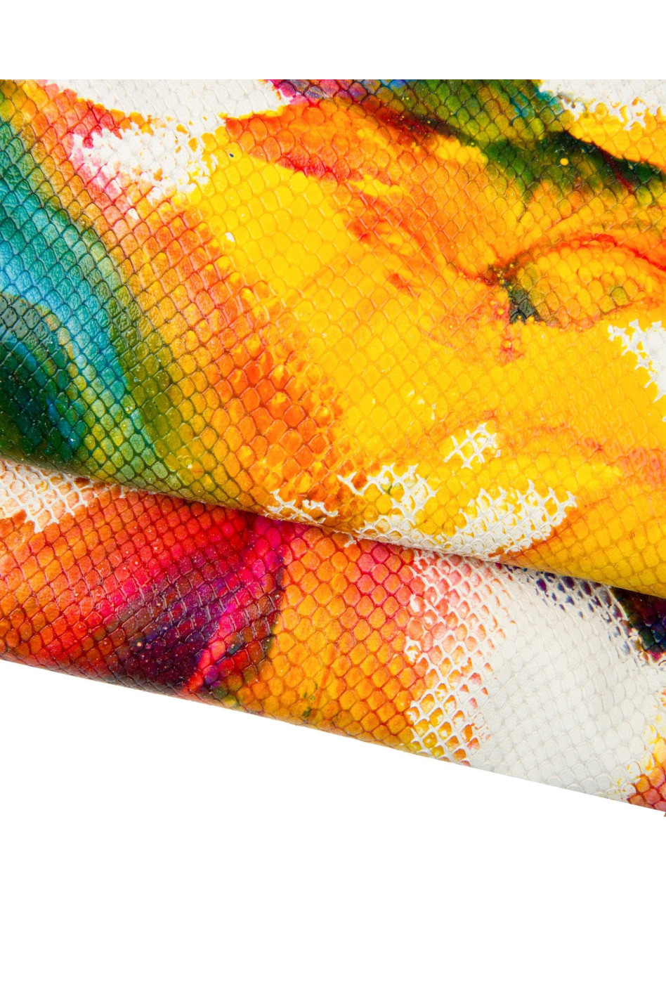 Bellissima pelle stampa pitone dipinta a mano con disegno colorato e vivace ideali per il fai da te.