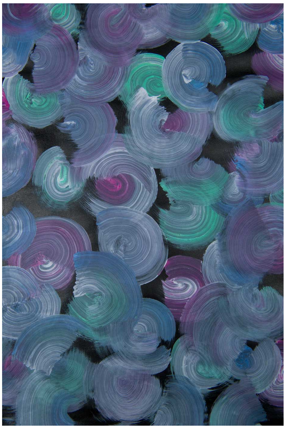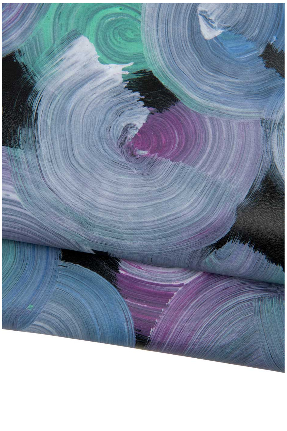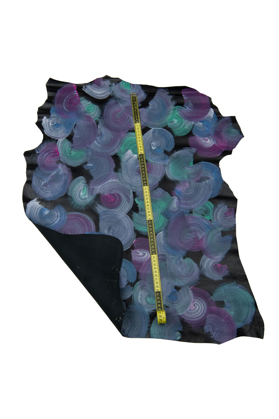 Pelle DIPINTA viola-verde su base nero, capra stampa cerchi colorati, pellame originale dipinto a mano morbida