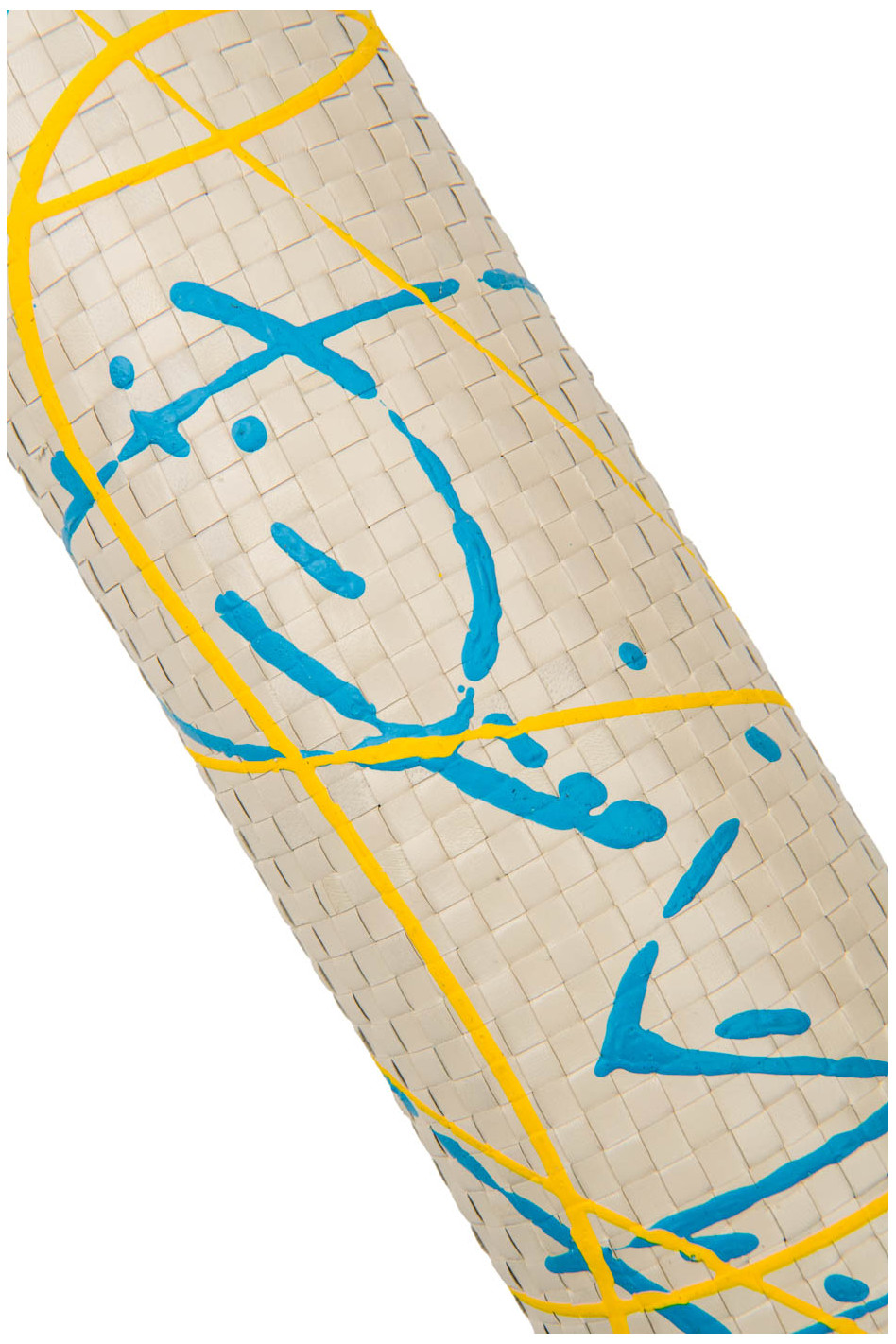 Pelle INTRECCIATO vero beige dipinta a mano, pellame stama POLLOCK schizzo giallo azzurro