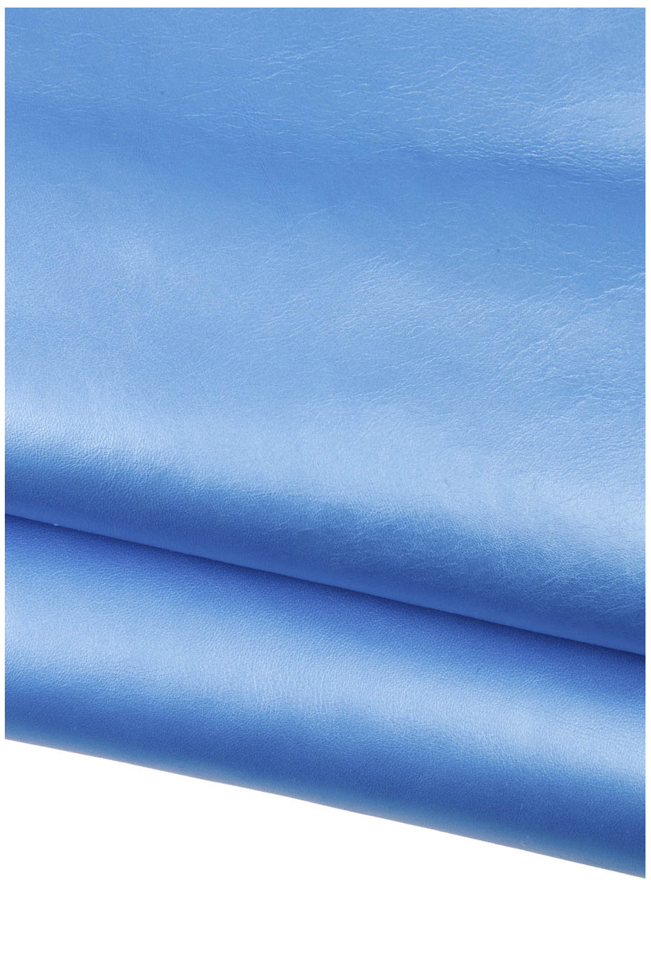 Stupendo pellame metallizzato azzurro, vitello liscio morbido, pellame celeste laminato per fai da te.