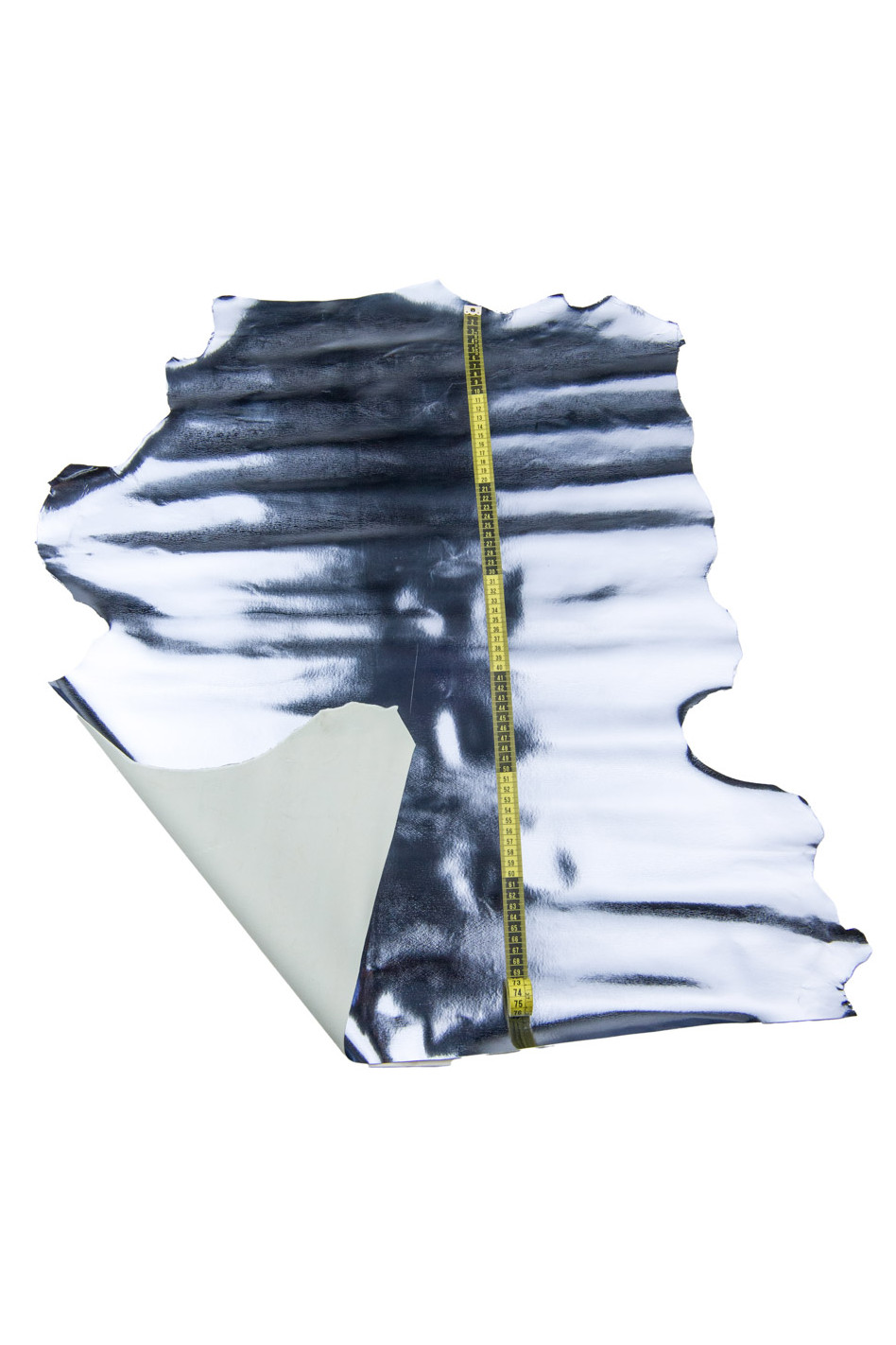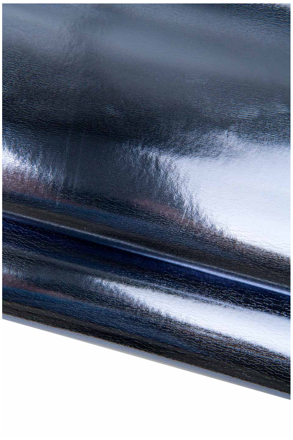 Pelle SPECCHIO acciaio con riflessi blu, vitello metallizzato liscio, pellame laminato morbido