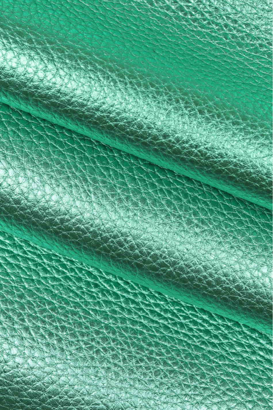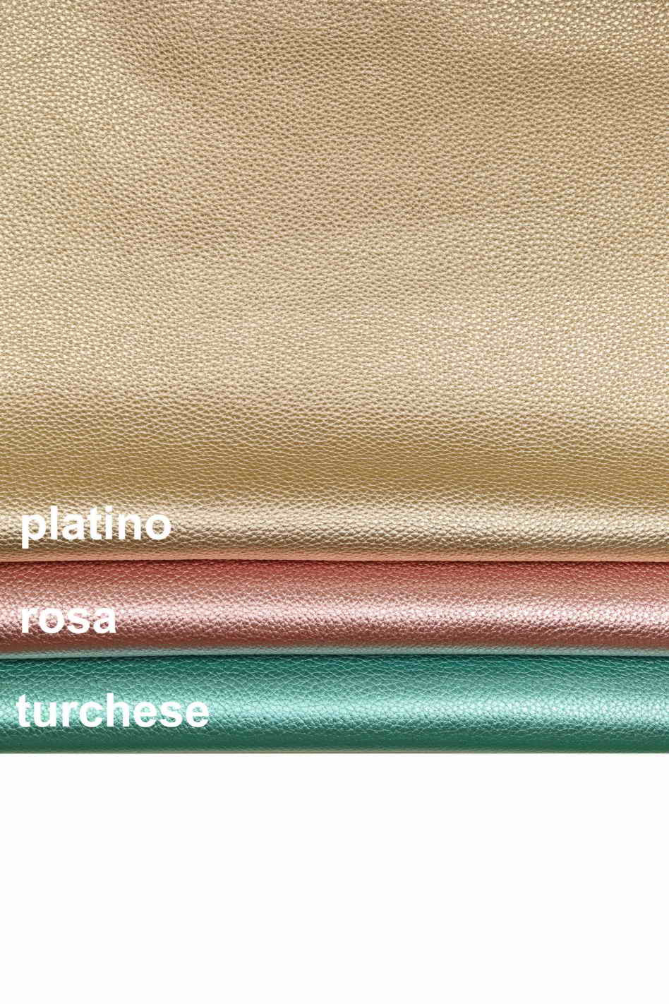 PELLE LAMINATA con grana turchese, rosa, platino, vitello stampa dollaro cervo, pellame metallizzato