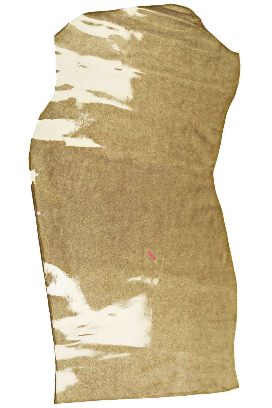 - Taglia : Le misure approssimative dal punto più corto e più stretto della pelle sono 121 x 63 cm, 66 x 55 cm (la più piccola di 2 pelli), 129 x 46 cm (leggerissime pieghe), 107 x 57 cm (la più piccola di 2 pelli, 1 buco/1 striatura), 66 x 64 cm (1 cicatrice)