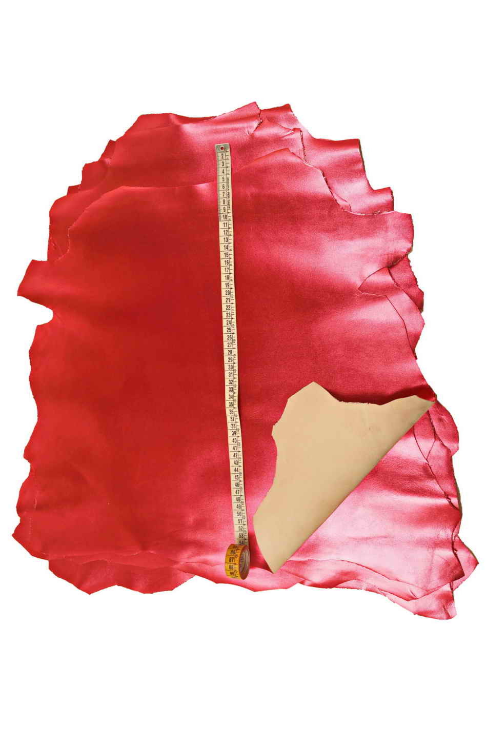 Pellame rosso LAMINATO, pelle METALLIZZATA rossa liscia, capra lucida morbida per artigianato, 0.8 -0.9 mm
