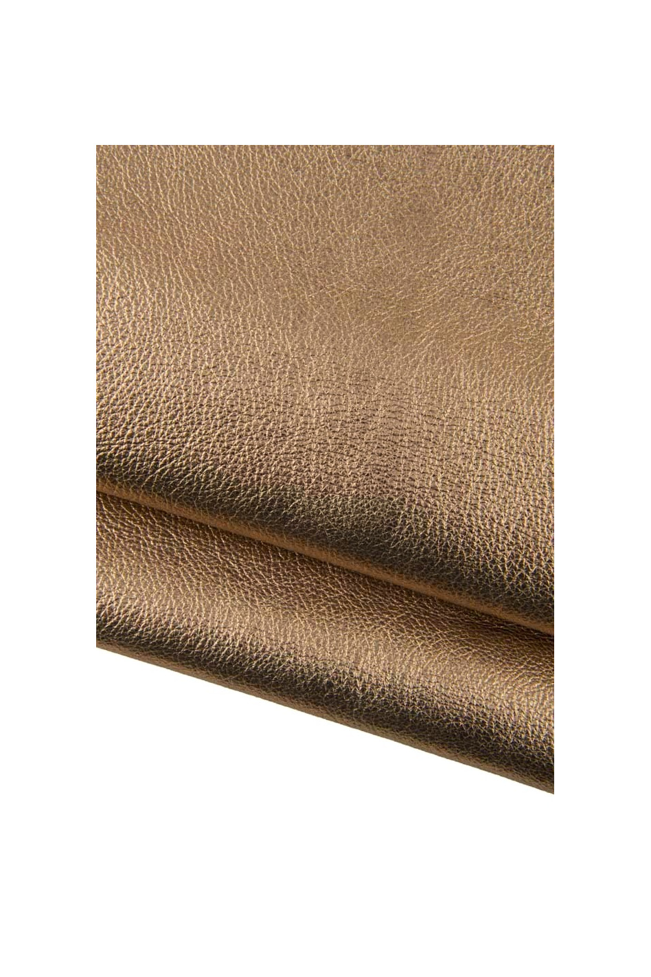 Pellame platino CHAMPAGNE, capra laminata stampa grana dollaro piccola, pelle metallizzata morbida