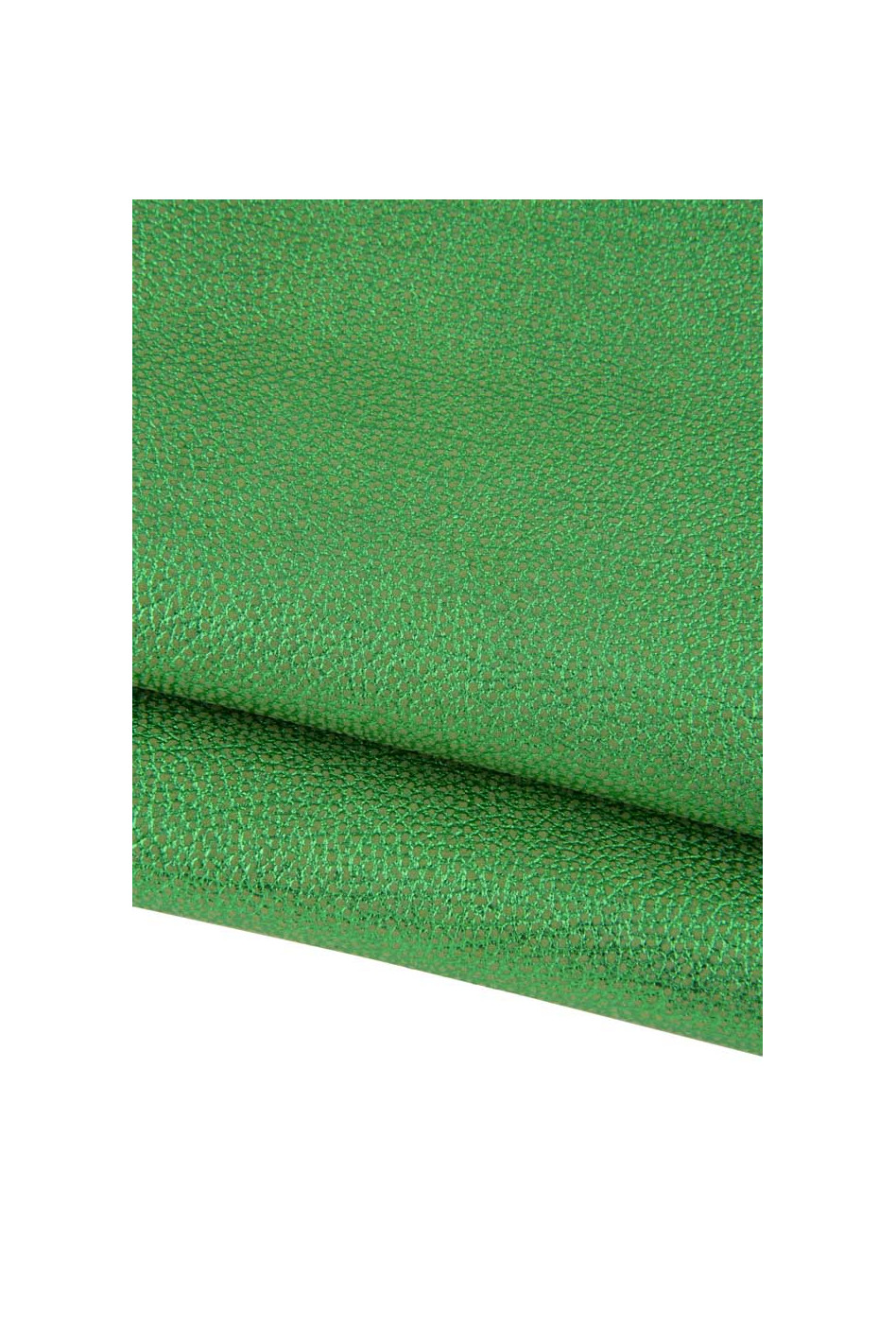 Pelle verde con GRANA, capra laminata stampa simil dollaro, pellame metallizzato per il fai da te