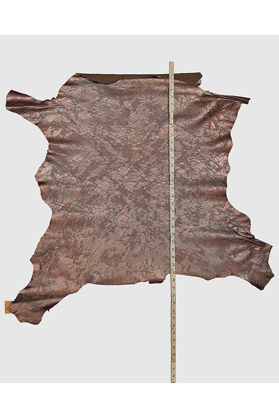 Bellissima pelle laminata marrone, capra metallizzata stampato effetto stropicciato, pellame morbido per hobbisti.