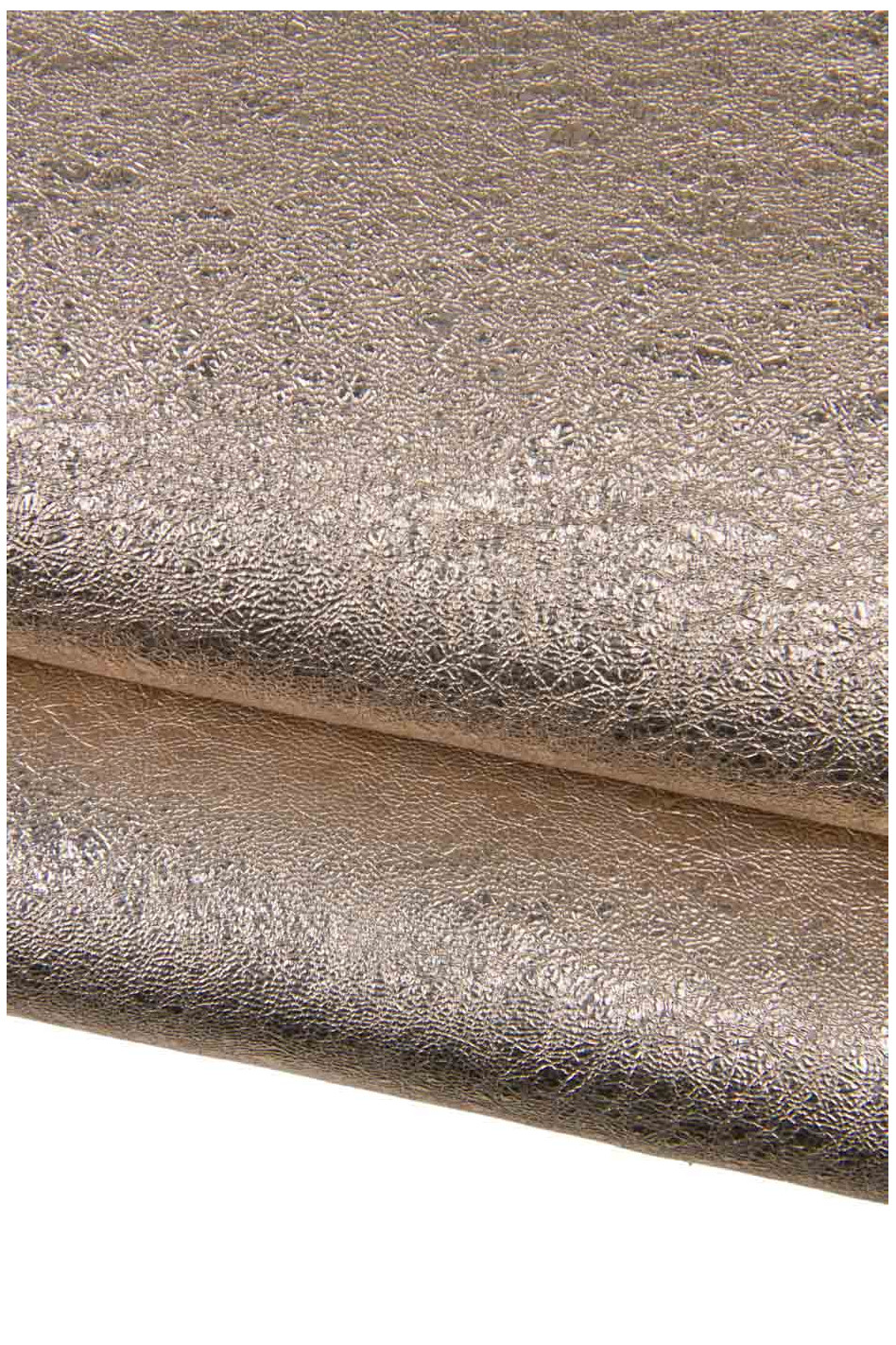 Meravigliosa pelle metallizzata rosa effetto stropicciato, pellame capra laminata morbida.