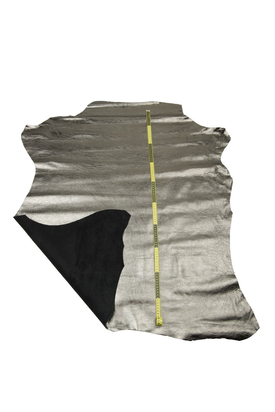 Pellame LAMINATO acciaio, vitello metallizzato grigio, pelle STROPICCIATA lucida per fai da te