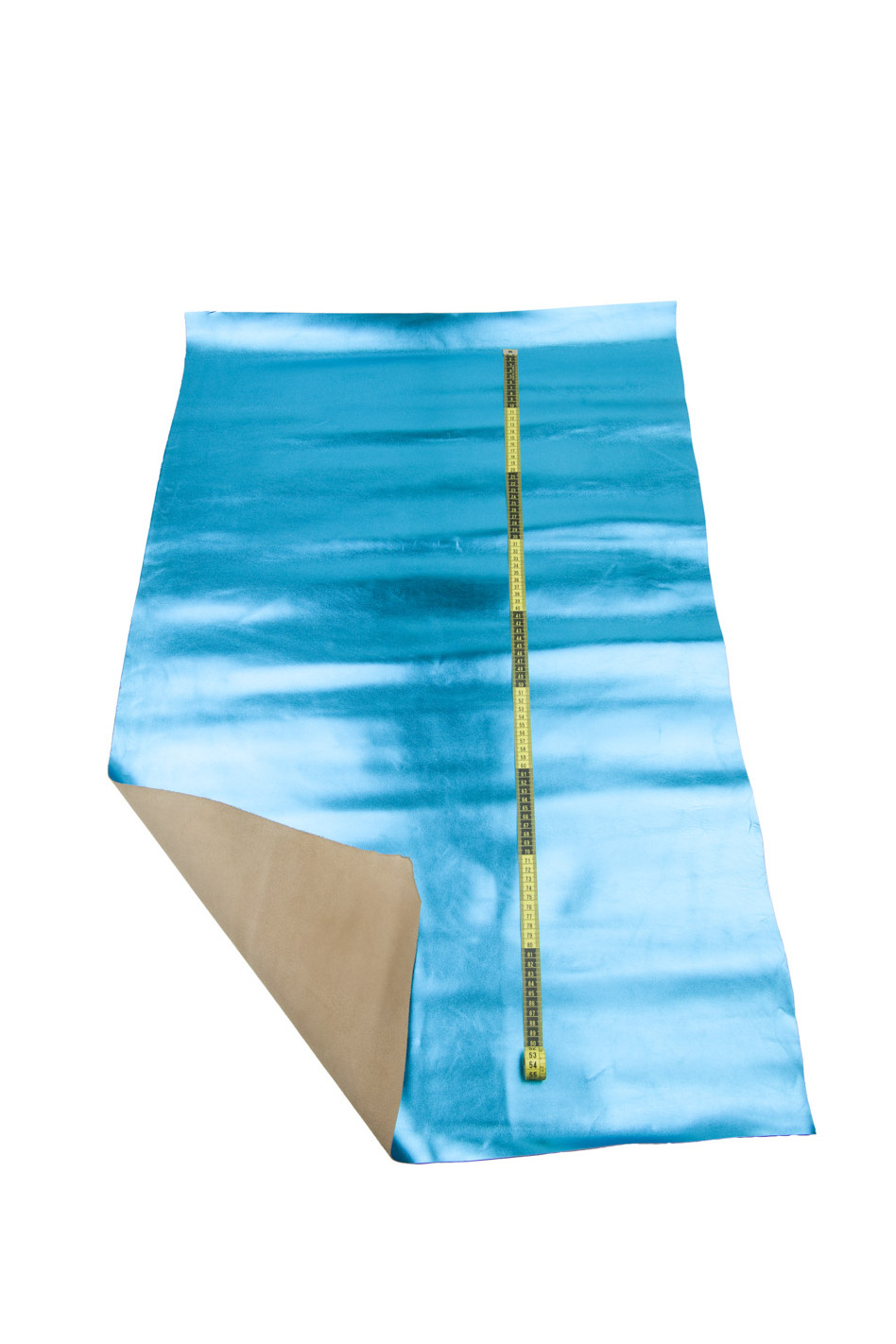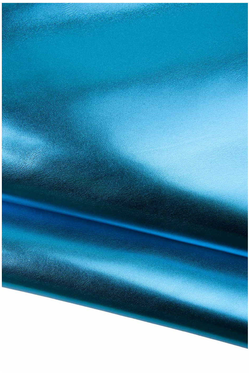 Fantastico pellame laminato azzurro, capra metallizzata liscia, pelle lucida morbida.