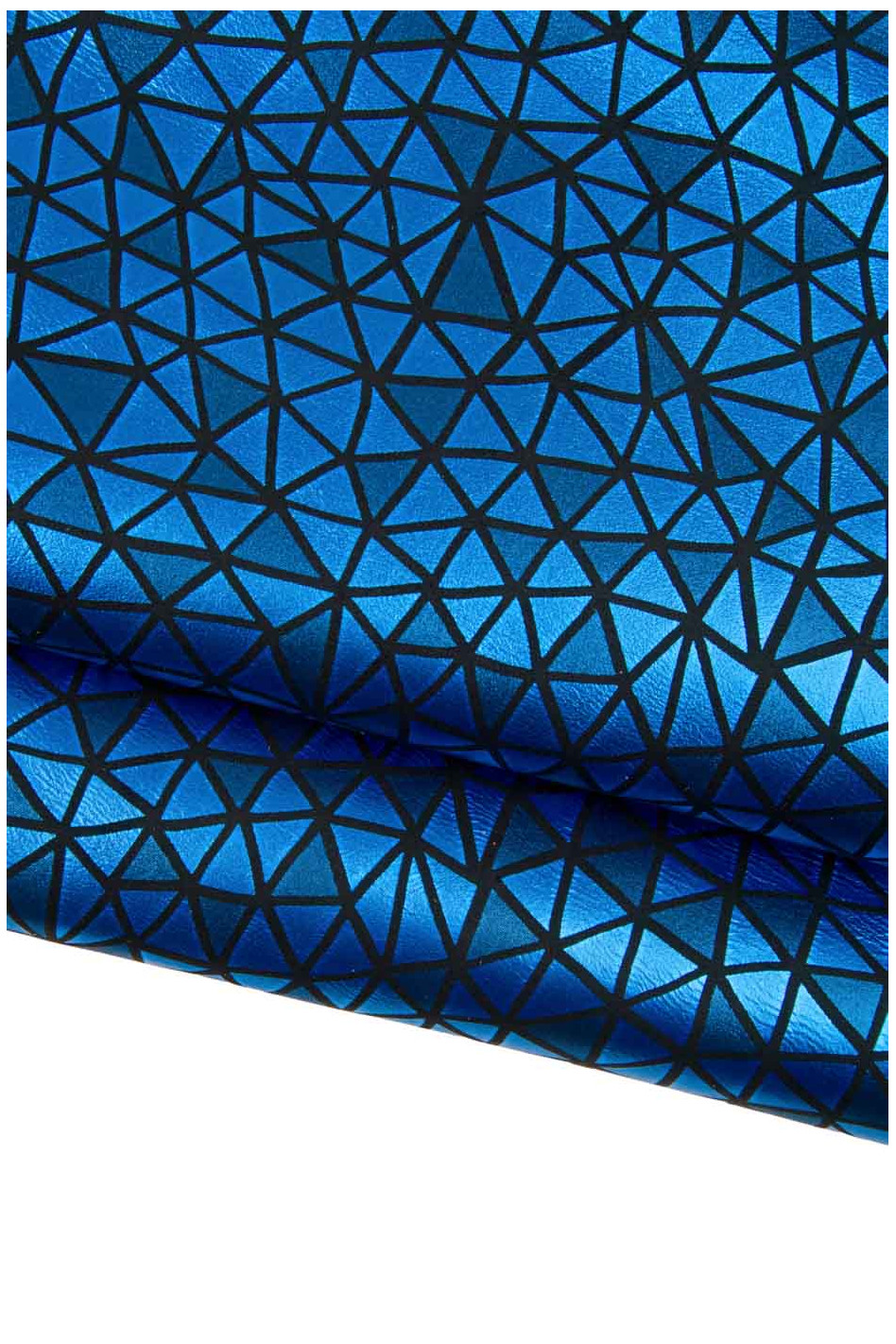 Pellame blu nero laminato stampa GEOMETRICA, capra metallizzata stampata a triangoli, pelle morbida per l'artigianato