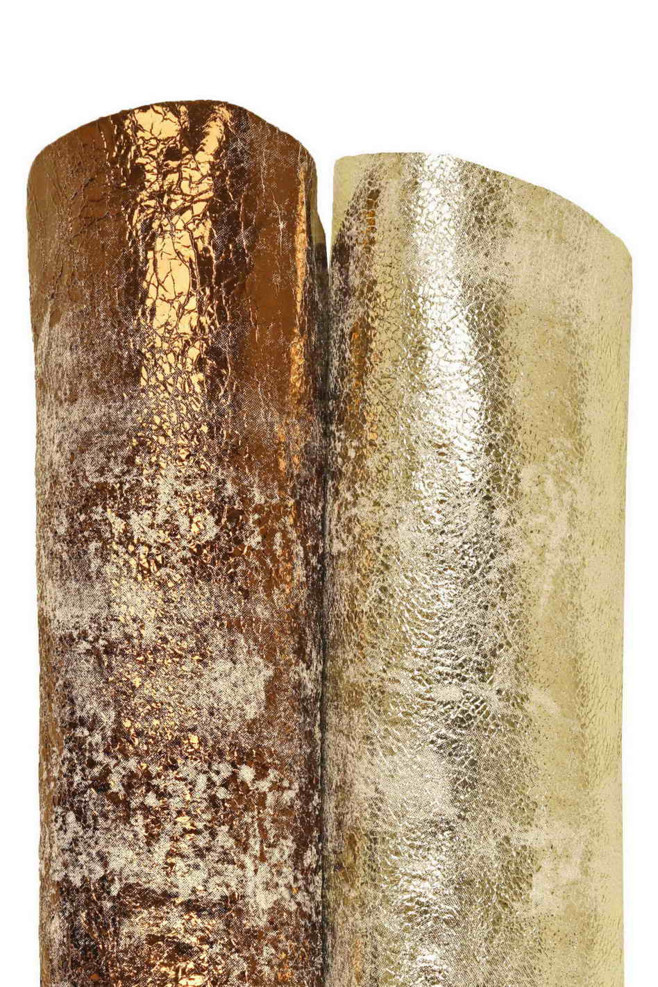 Meravigliosa pelle di capra metallizzata effetto consumato nei colori platino e marrone, stropicciata, luminosa e molto morbida.