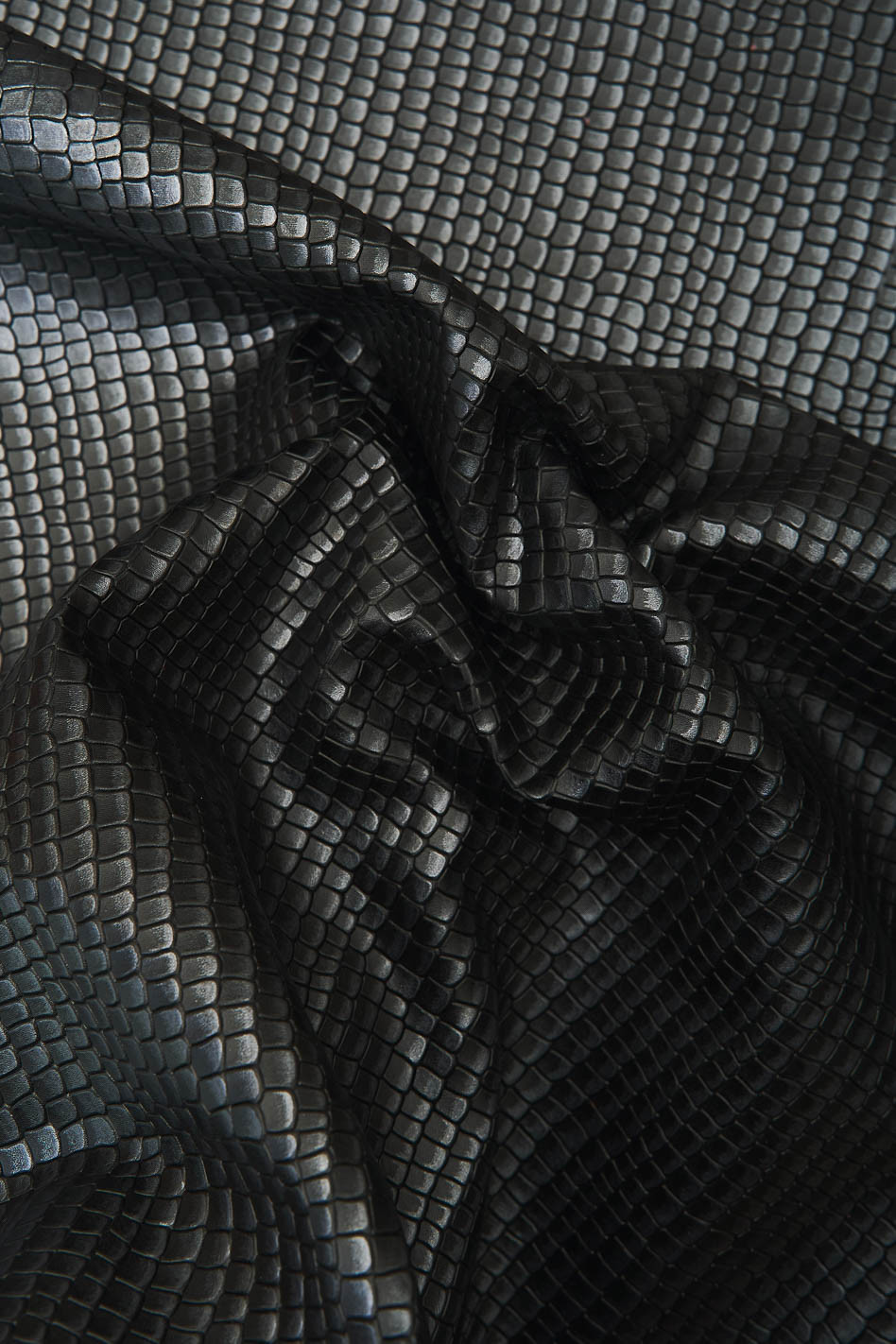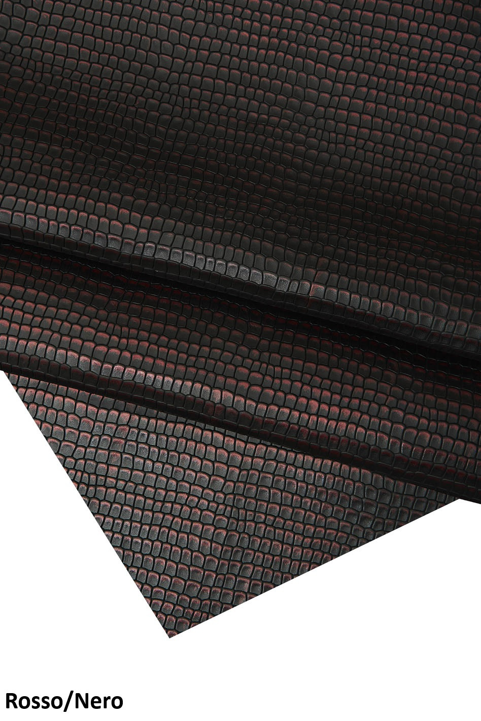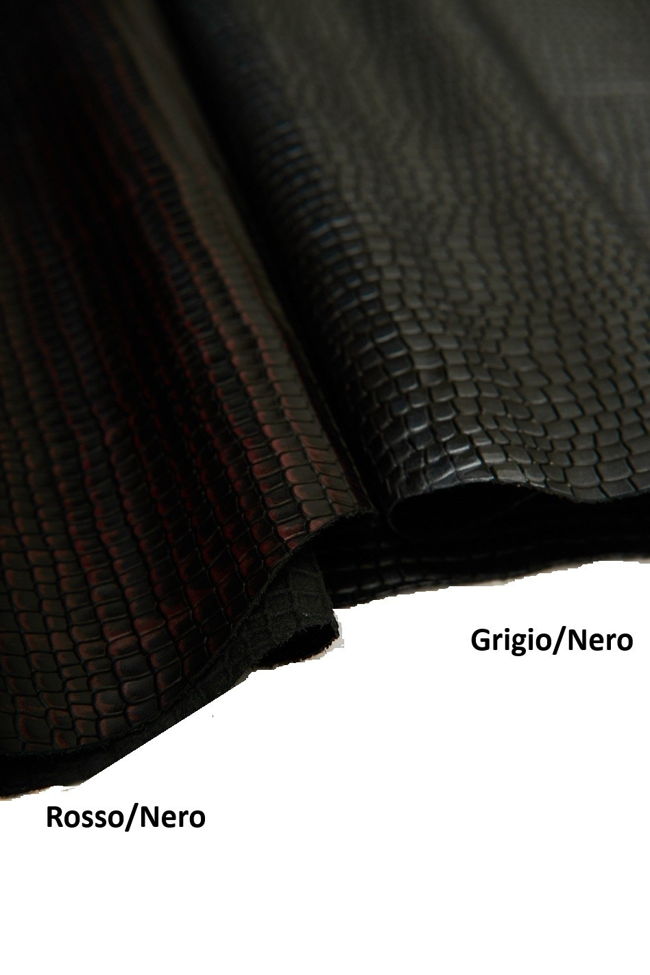 Pelle stampato COCCODRILLO grigio/nero e rosso/nero, vitello lucido stampa cocco, pelle morbida