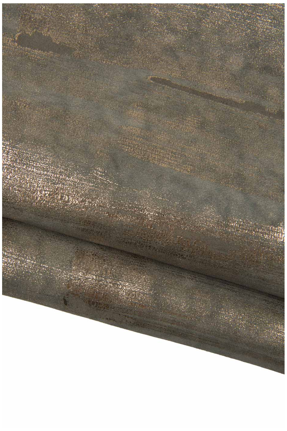 Pellame grigio - bronzo, capra SCAMOSCIATA grigia stampa LAMINATA effetto pennellate, pelle sportiva morbida