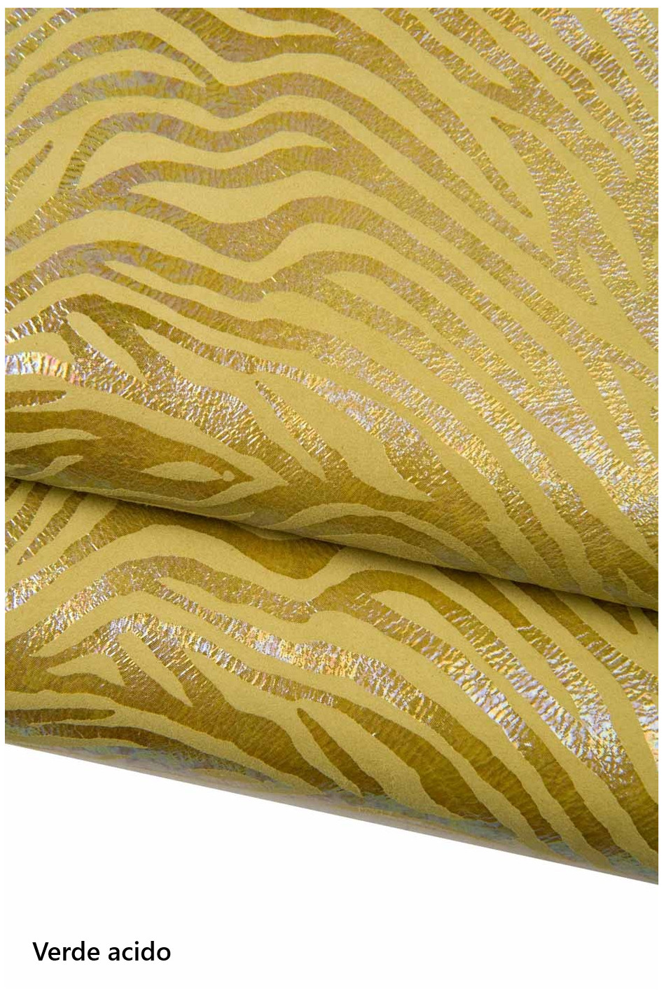 Pelle ZEBRATA OLEOGRAFICA, camoscio su capra laminato iridescente, pellame metallizzato per artigianato