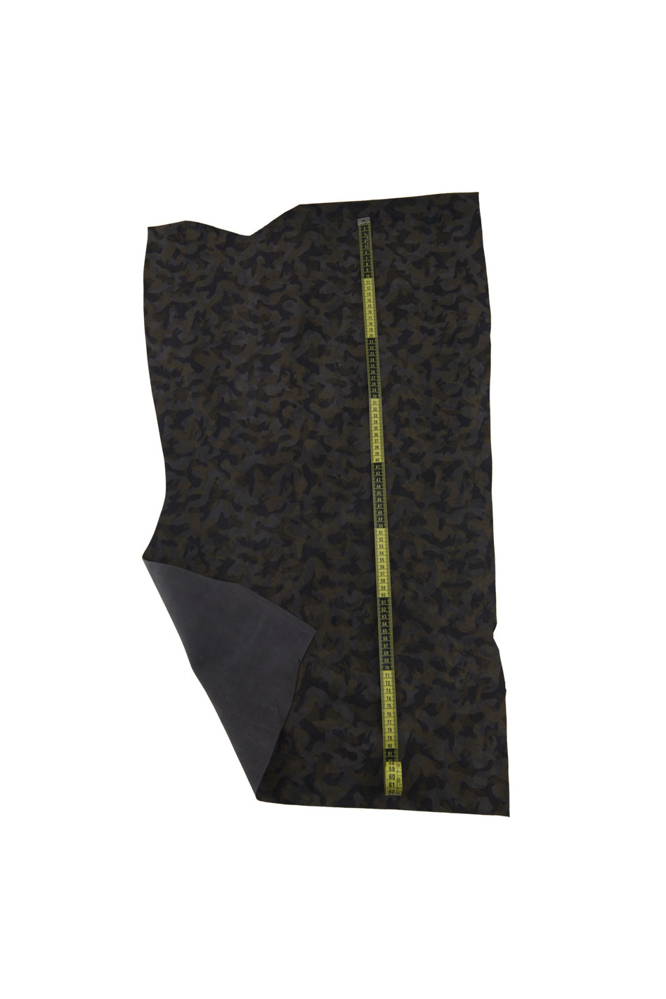 Pelle motivo CAMOUFLAGE grigio e bronzo GLITTER, vitello scamosciato stampa militare 1.2 - 1.3 mm