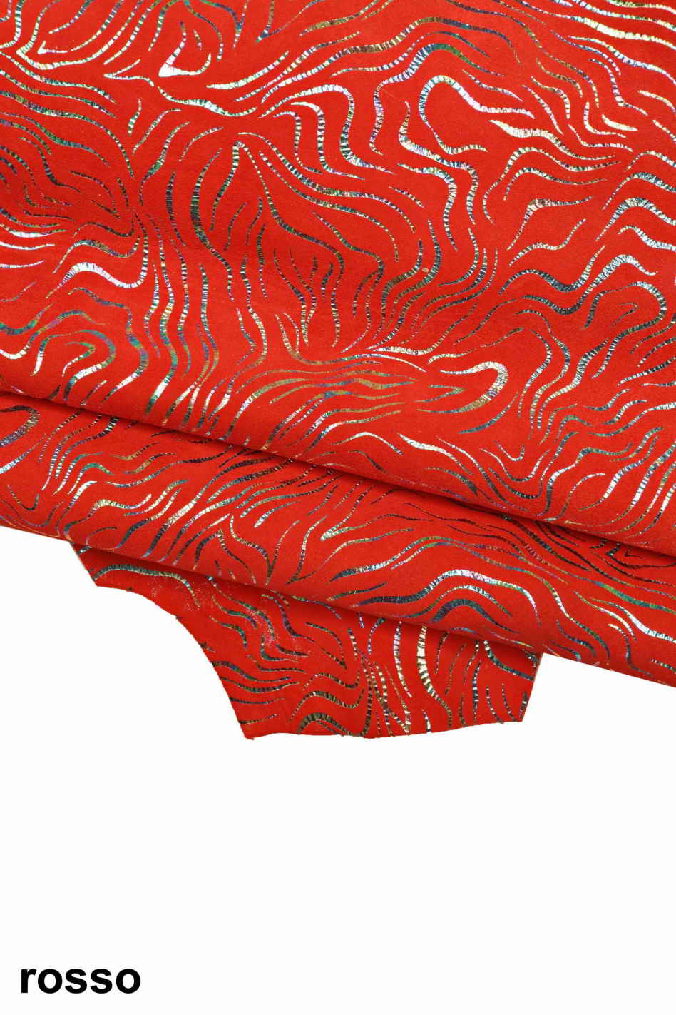 Pellame stampato con lamina OLEOGRAFICA, camoscio disegno simil ZEBRA, pelle di capra morbida metallizzata scamosciata
