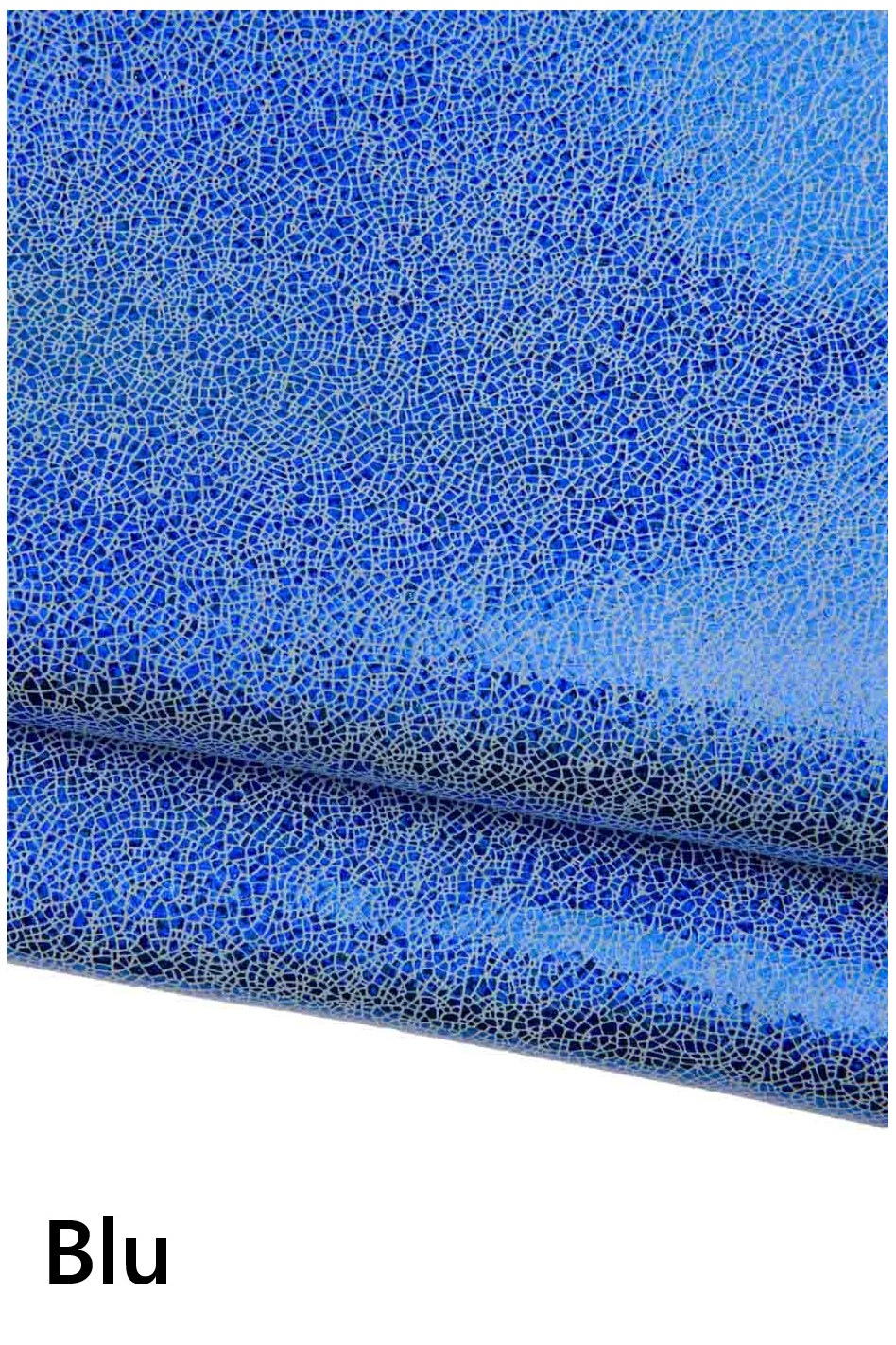 Pelle IRIDESCENTE stampa crackle, capra laminata crack, pellame metallizzato luminoso