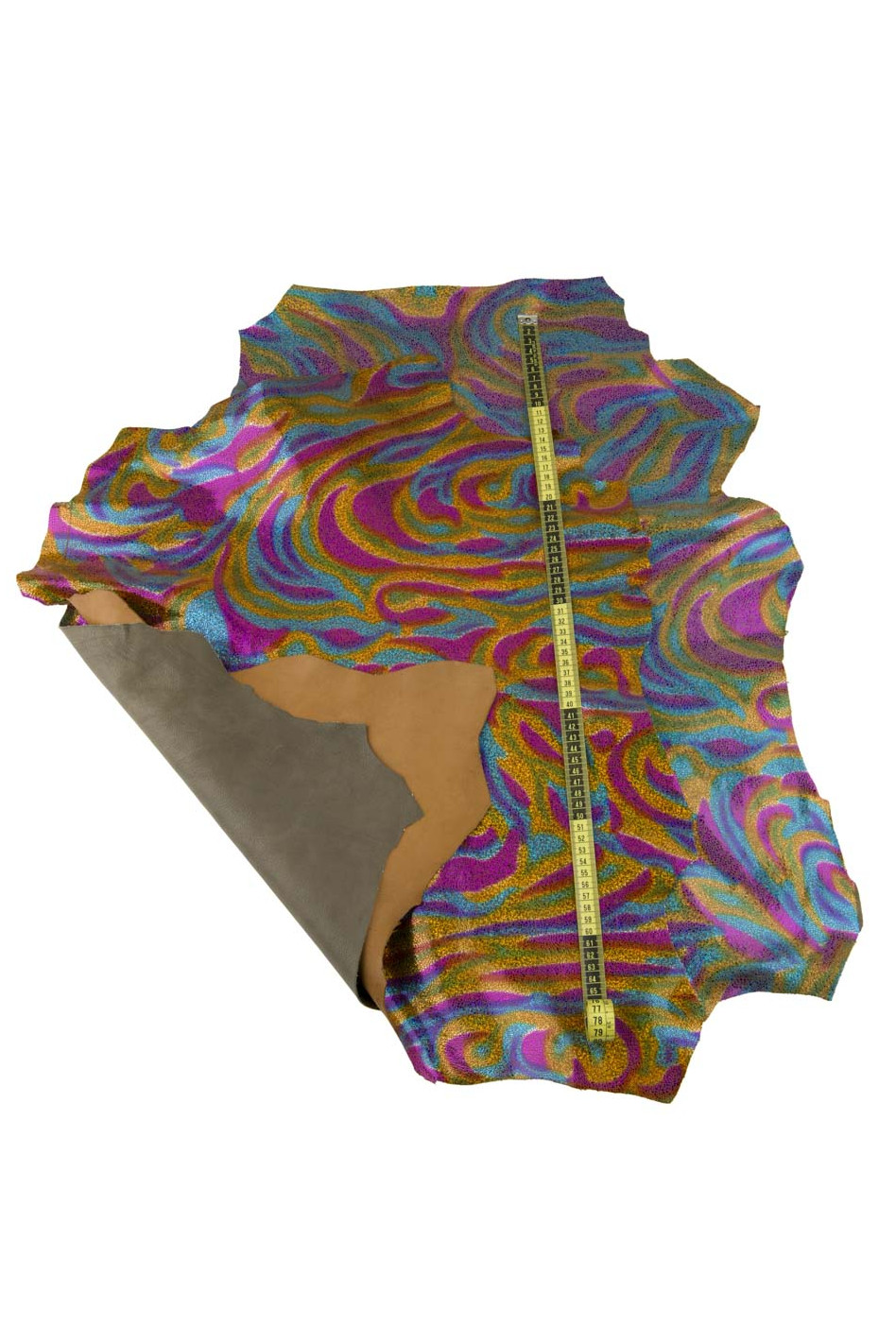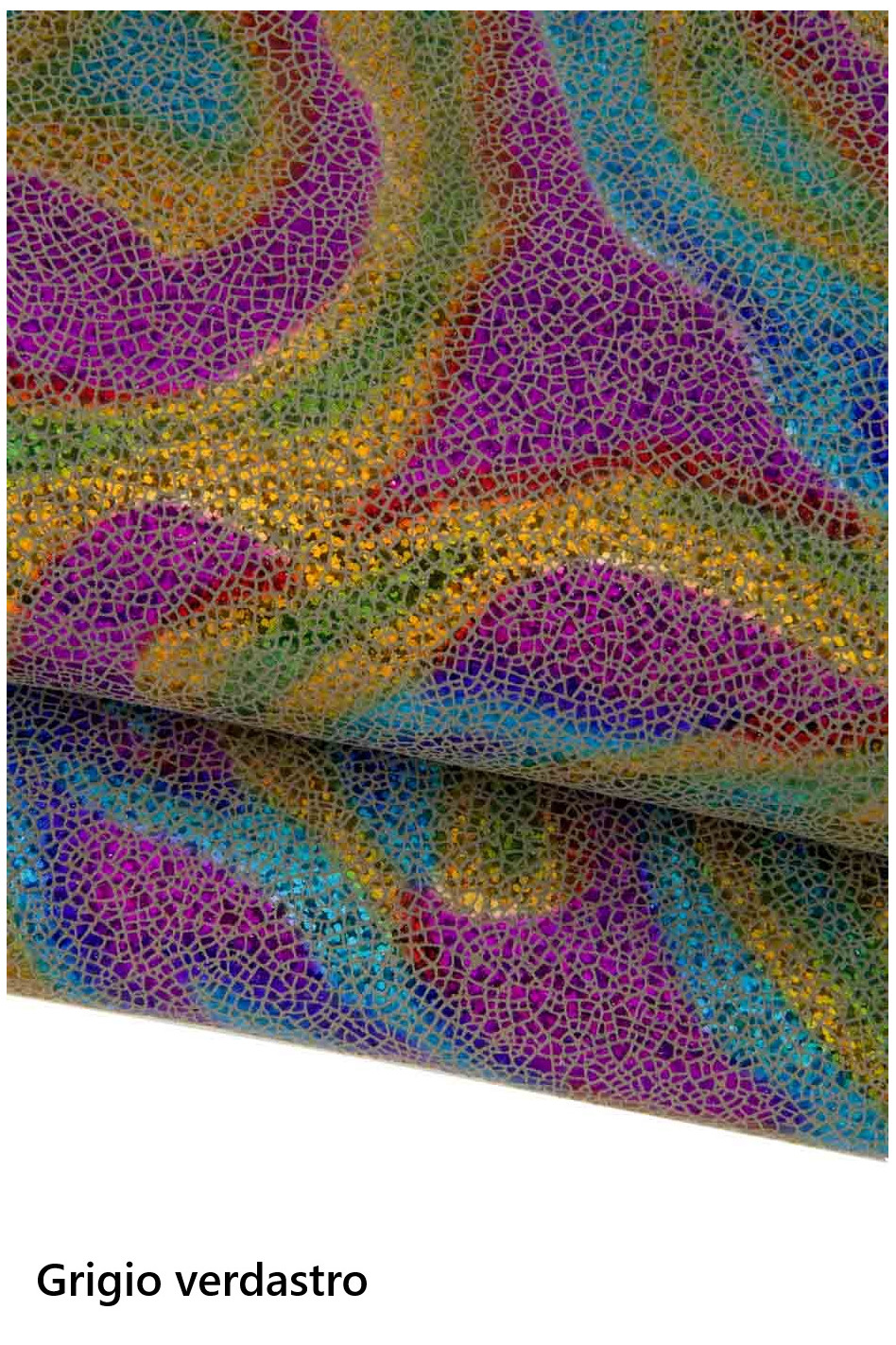 Pelle multicolor IRIDESCENTE, capra laminata stampa crackle, pellame vivace per il fai da te