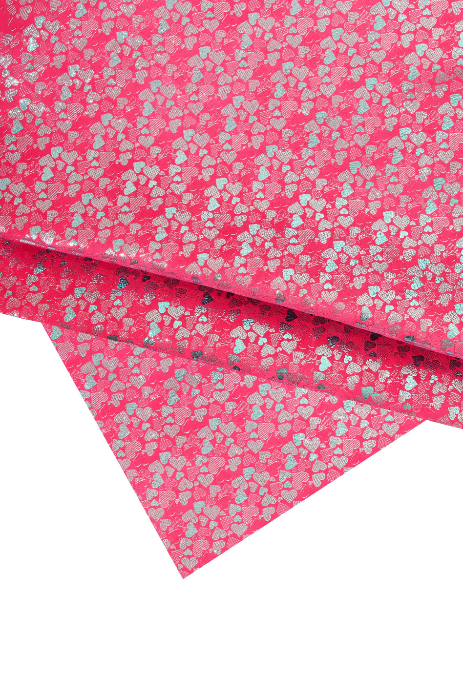 Pelle rossa turchese stampa CUORI, pellame scamosciato laminato, camoscio su capra metallizzato stampato, morbido, luminoso
