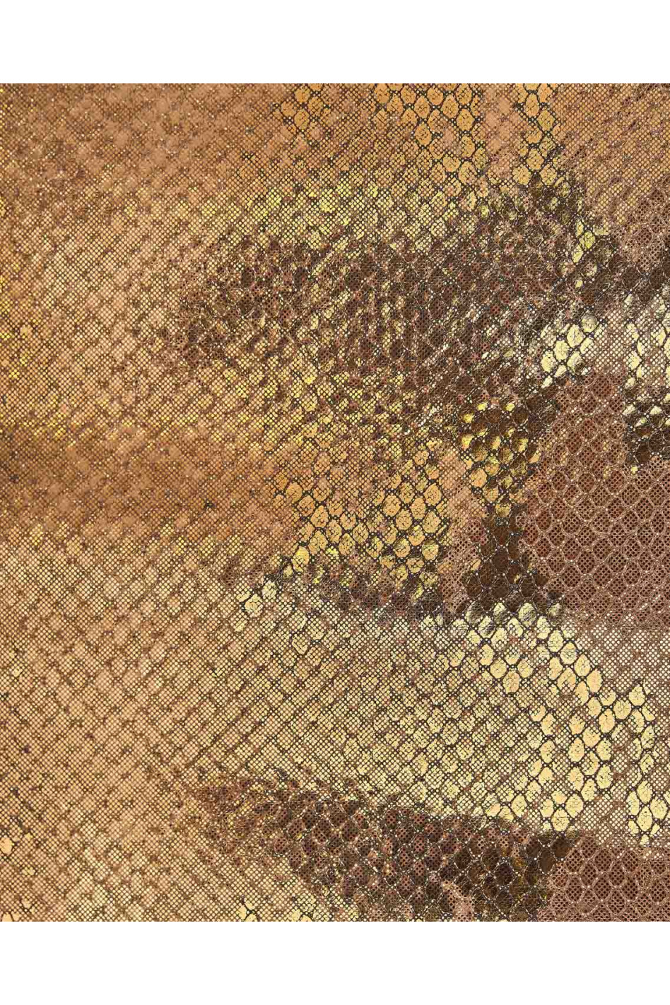 Stupenda pelle serpente marrone, vitello stampa rettile laminato, pellame motivo pitone morbidissimo.