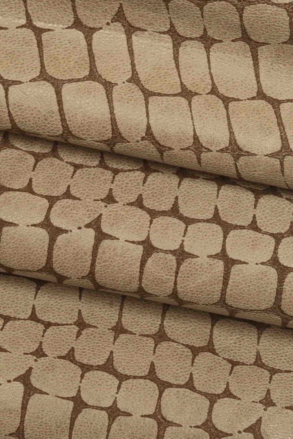 Pelle STAMPA coccodrillo beige, marrone e grigio, capra vintage sportiva, pellame morbido stampa cocco