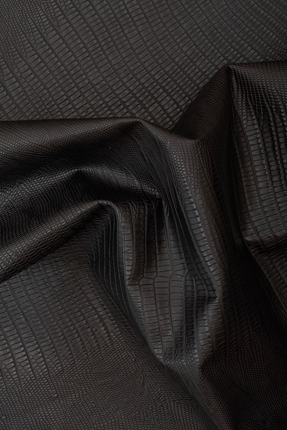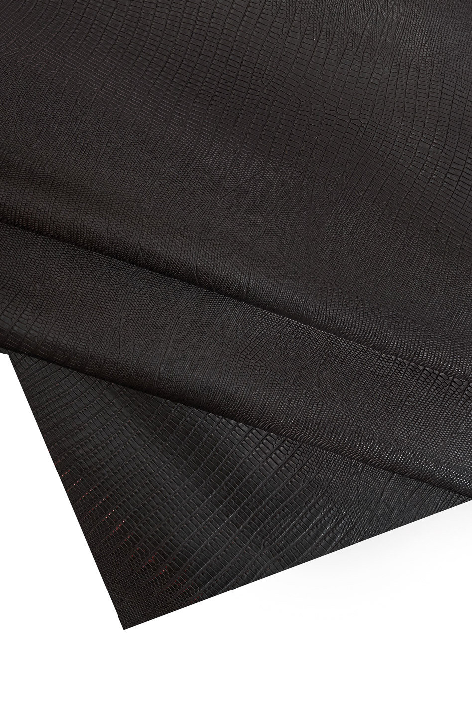 Pellame stampa LUCERTOLA testa di moro, vitello motivo tejus marrone, pelle lucida stampata lizard