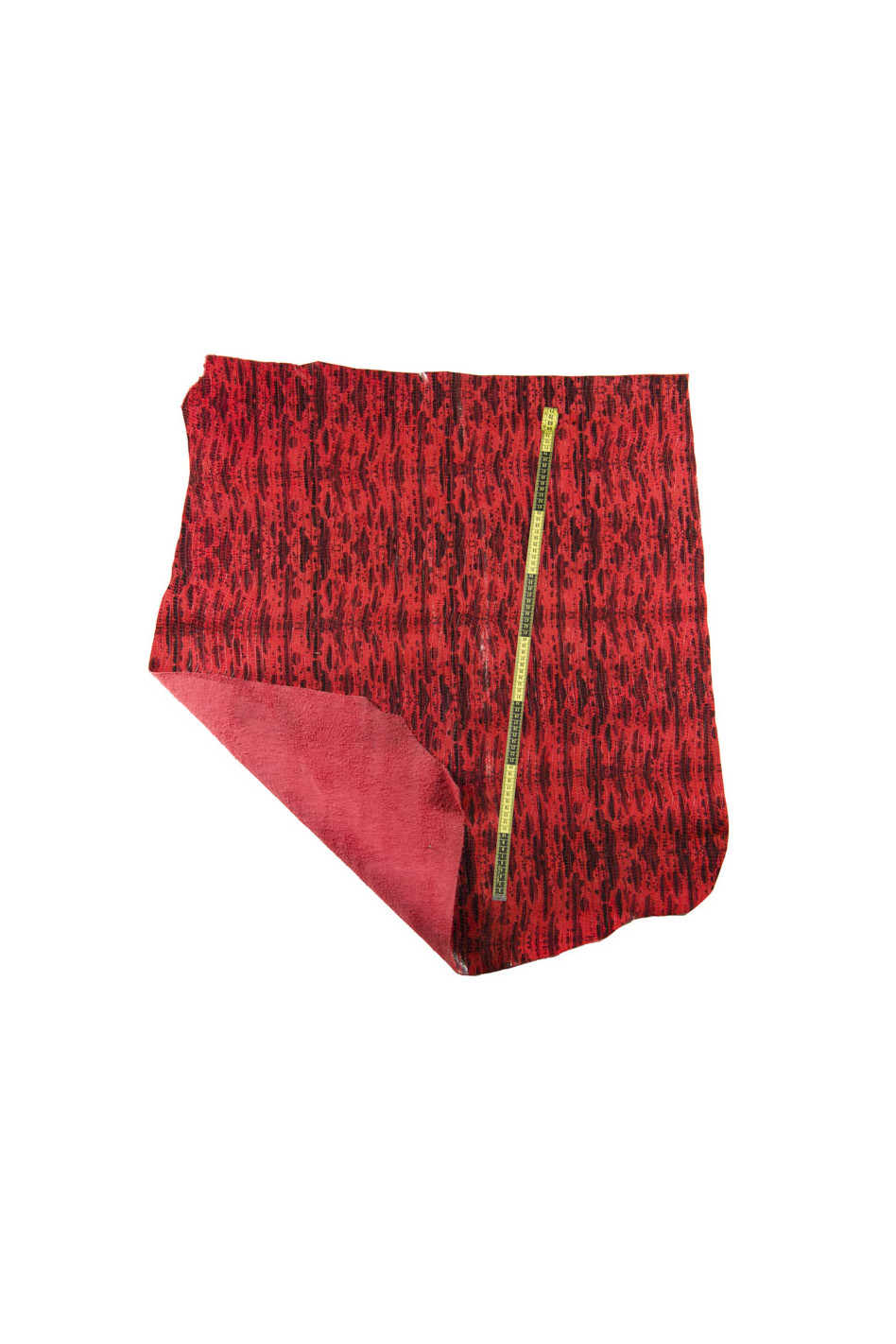 Introvabile pelle di coccodrillo rosso nero, vitello lucido motivo cocco, pellame morbido stampa alligatore. Perfetto per borse, pochette, portafogli e altri oggetti artigianali dal gusto esotico.
