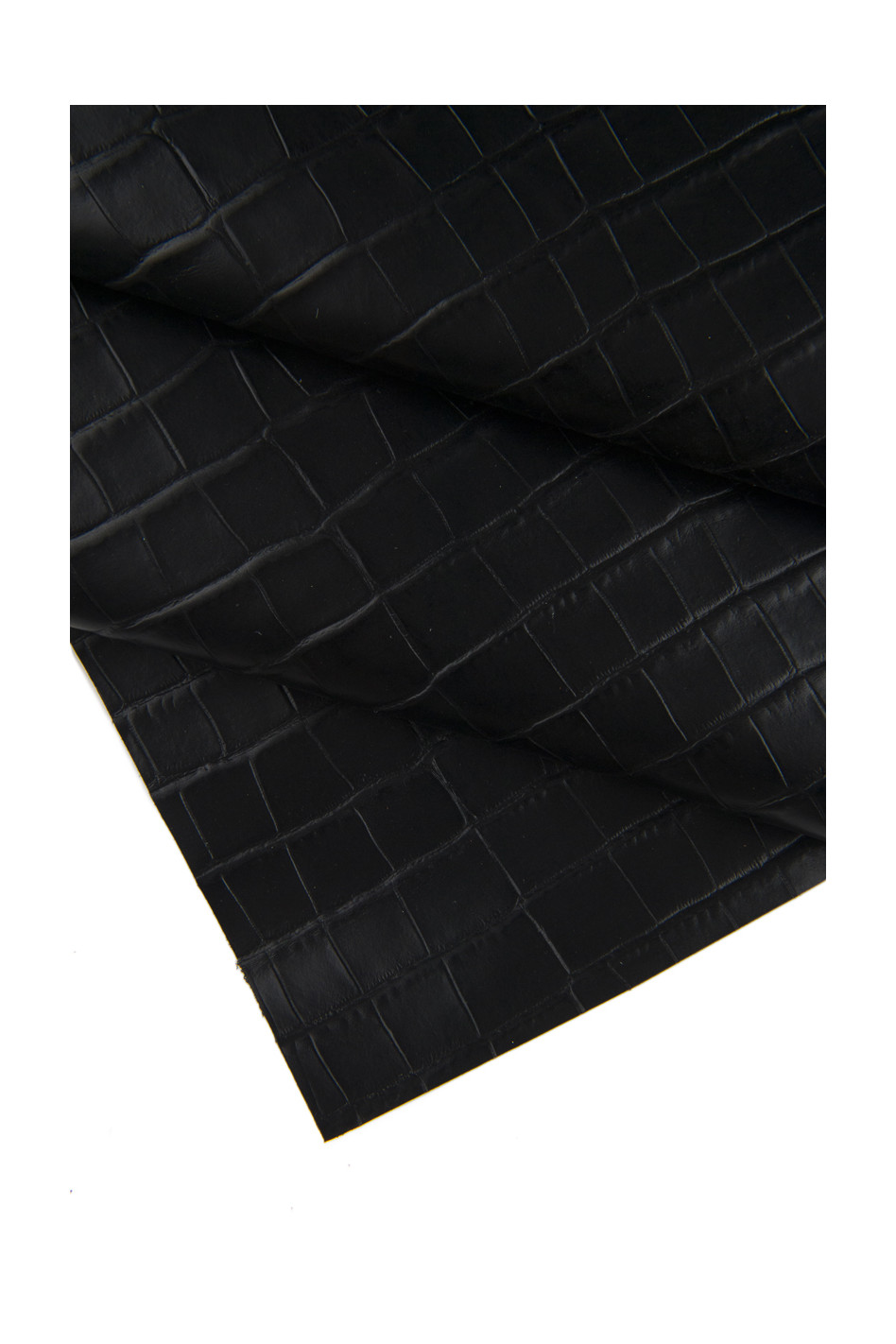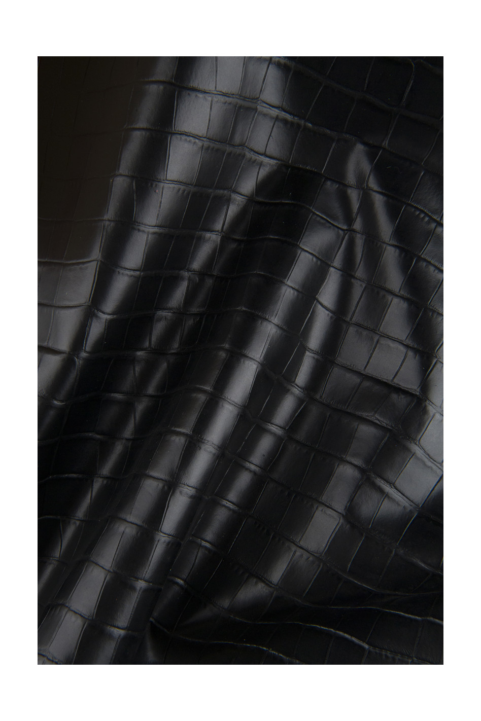 Meravigliosa pelle di vitello grigio con stampa coccodrillo, lucida.