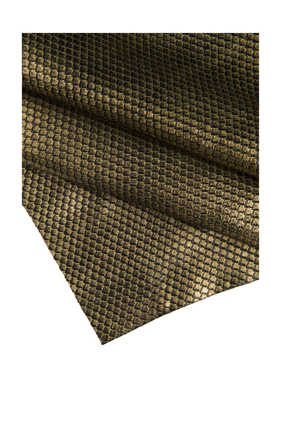 Pelle laminata ORO stampa serpente, vitello intagliato metallizzato, pellame motivo rettile morbido 1.1 - 1.2 mm