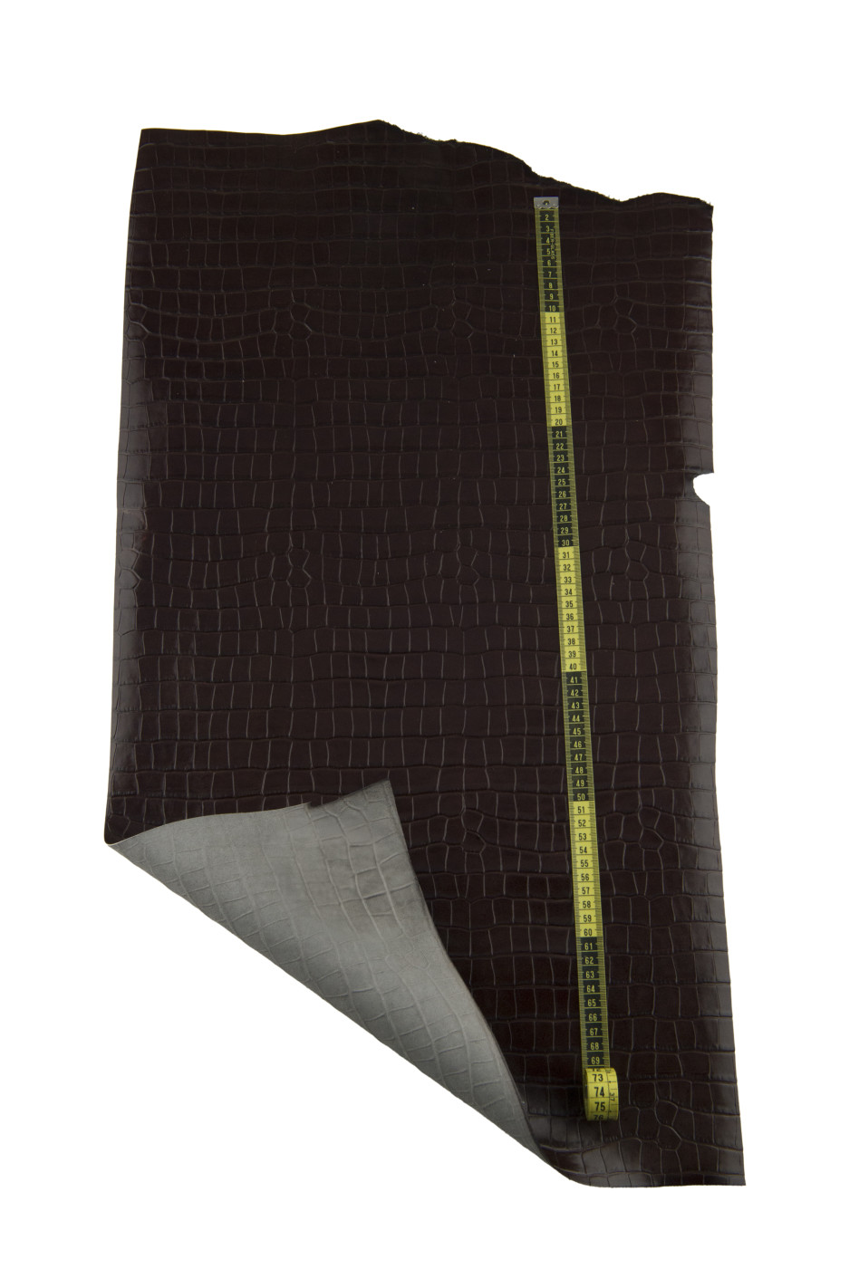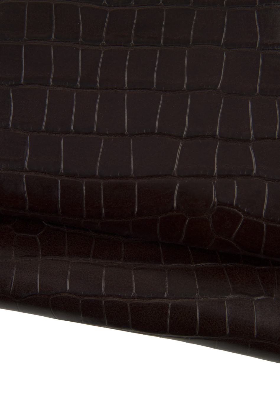 Meravigliosa pelle di vitello marrone con stampa coccodrillo, morbidezza media.
