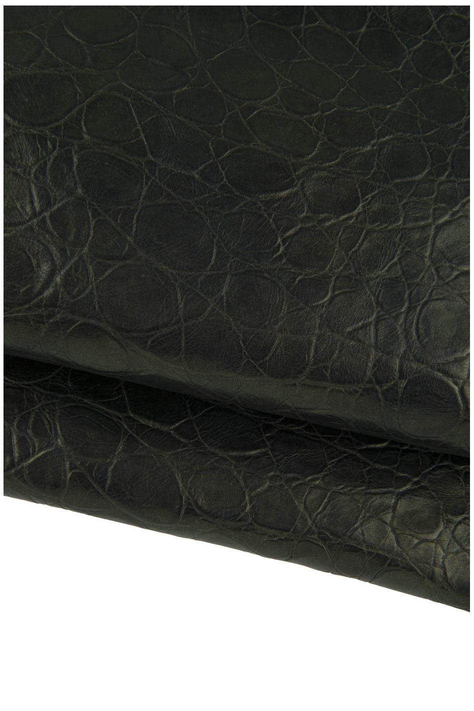 Favolosa pelle di vitello laminata bronzo con stampa alligatore, morbida.