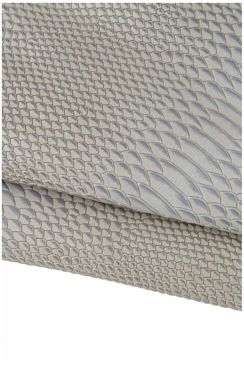 Meravigliosa pelle di capra grigia con stampa rettile pitone, semi lucida, morbida.