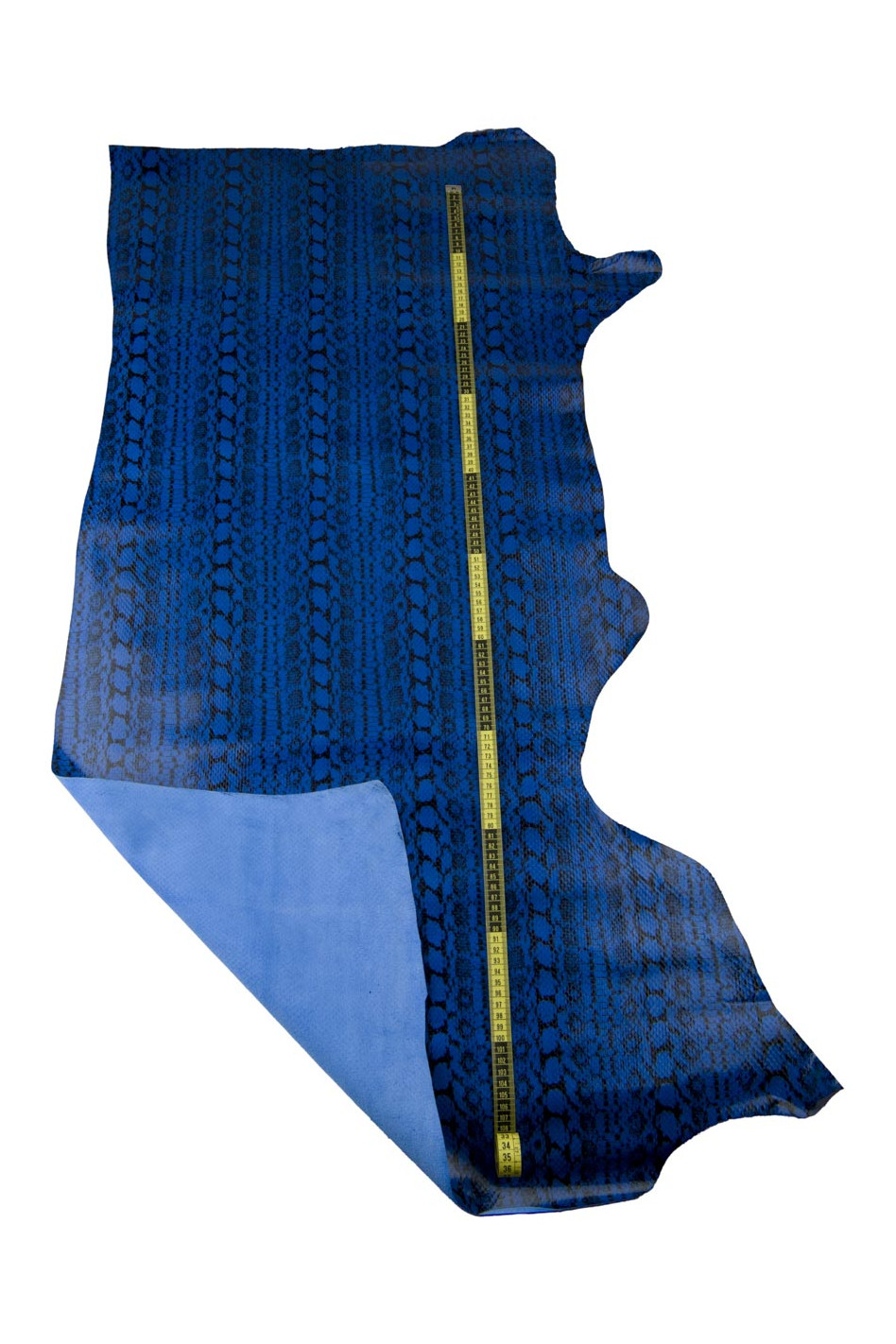 Pelle PITONE bluette, vitello lucido stampa rettile, pellame motivo stampa serpente morbido