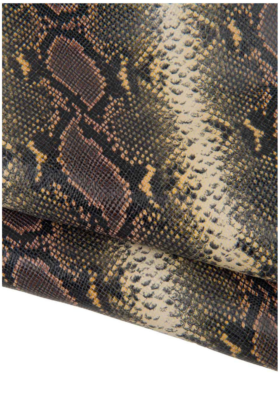 Pelle PITONE marrone giallo, capra lucida stampa SERPENTE, pellame morbido animalier rettile